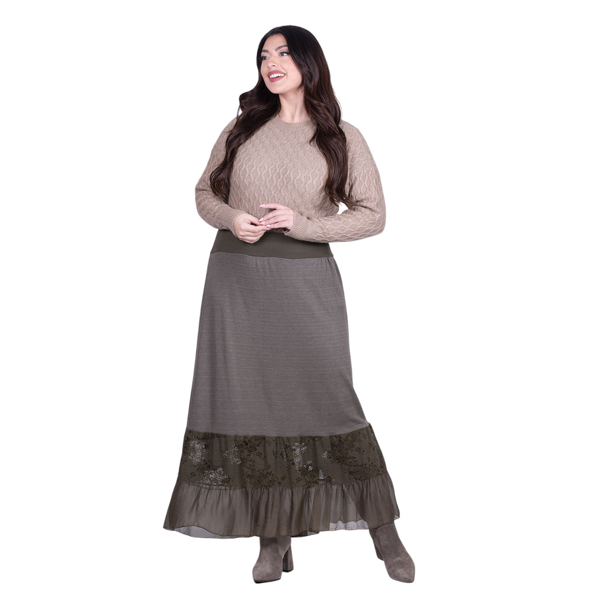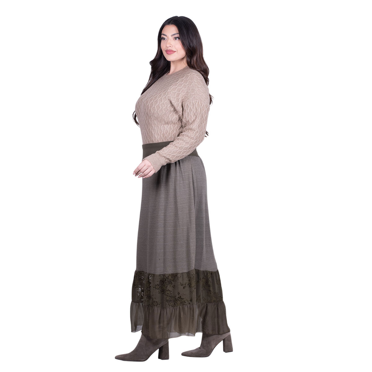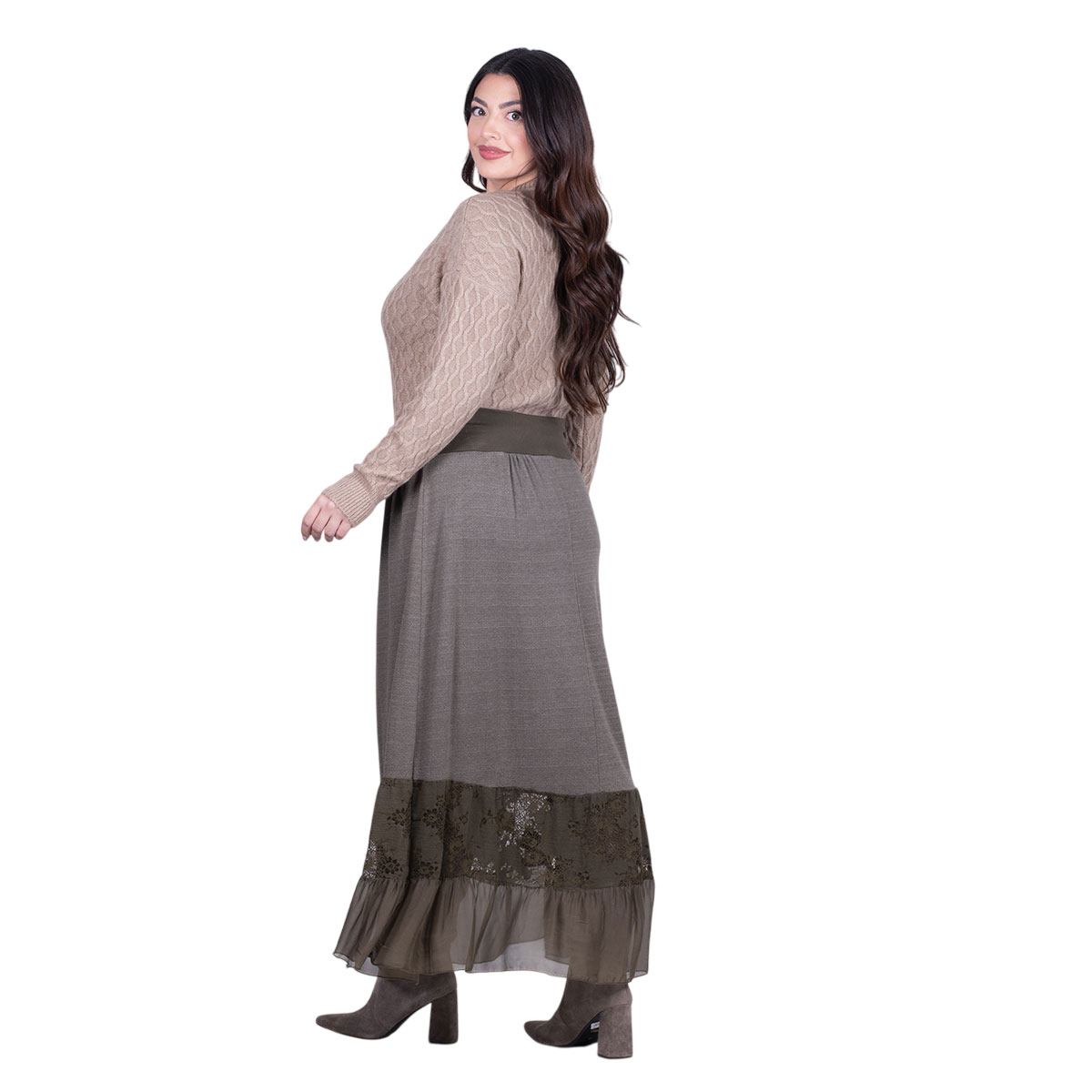 Platinum Φούστα Χακί Γυναικεία Μακριά Με Ρομαντική Δαντέλα Καθημερινή Free Size – 8930-HG