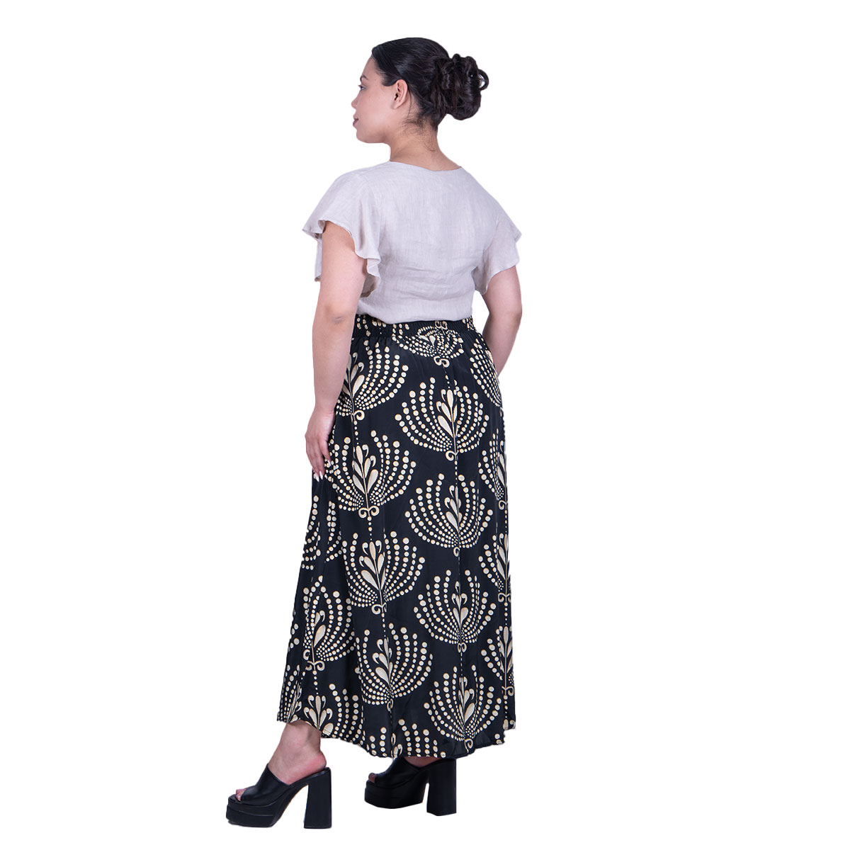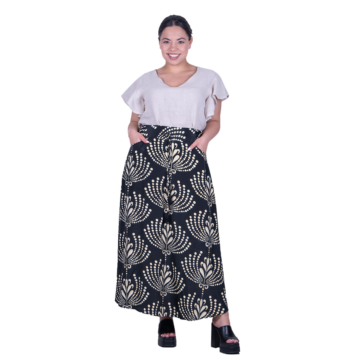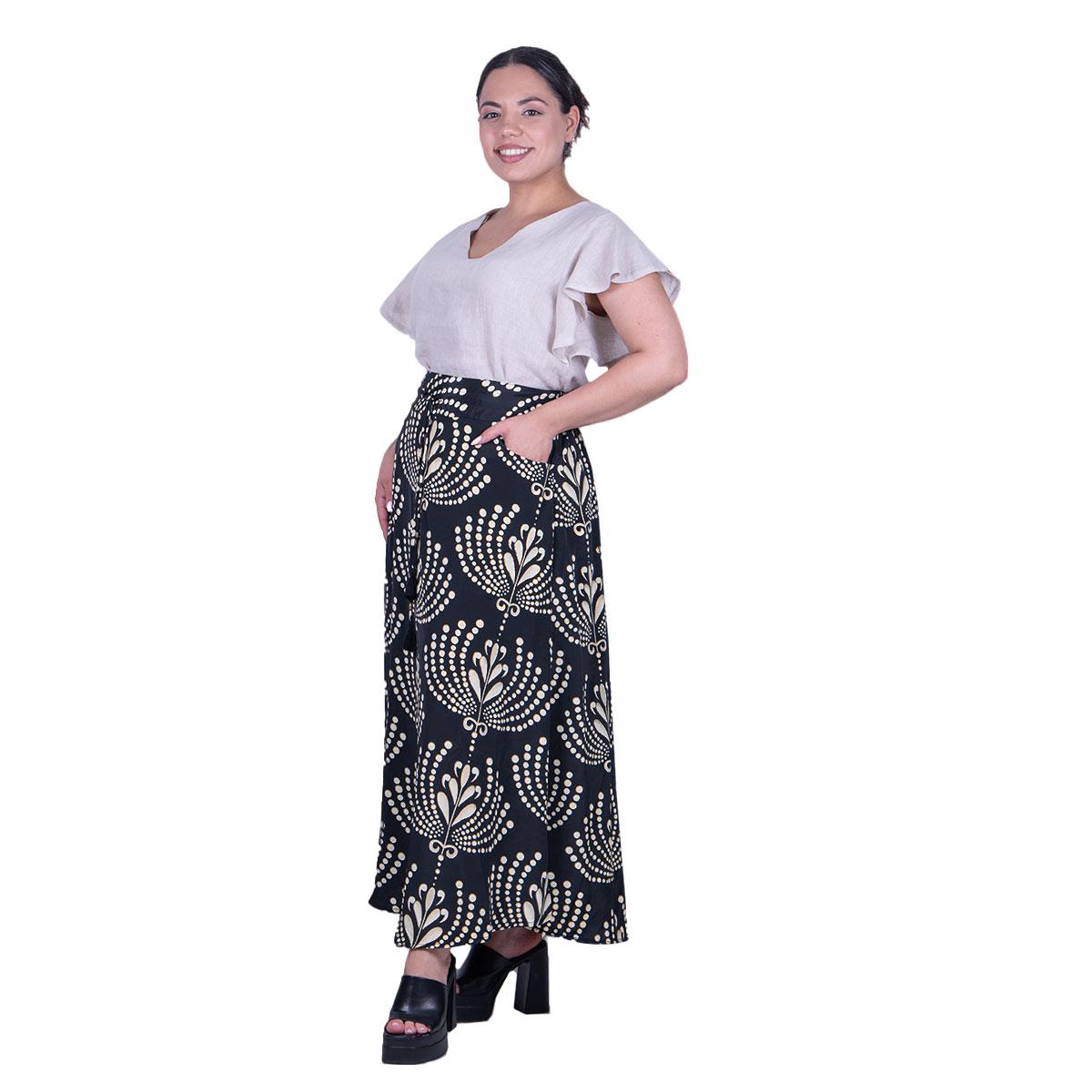 Platinum Φούστα Μαύρη Γυναικεία Με Εκρού Boho Σχέδια Μακριά Εβαζέ Free Size – 82552-BC