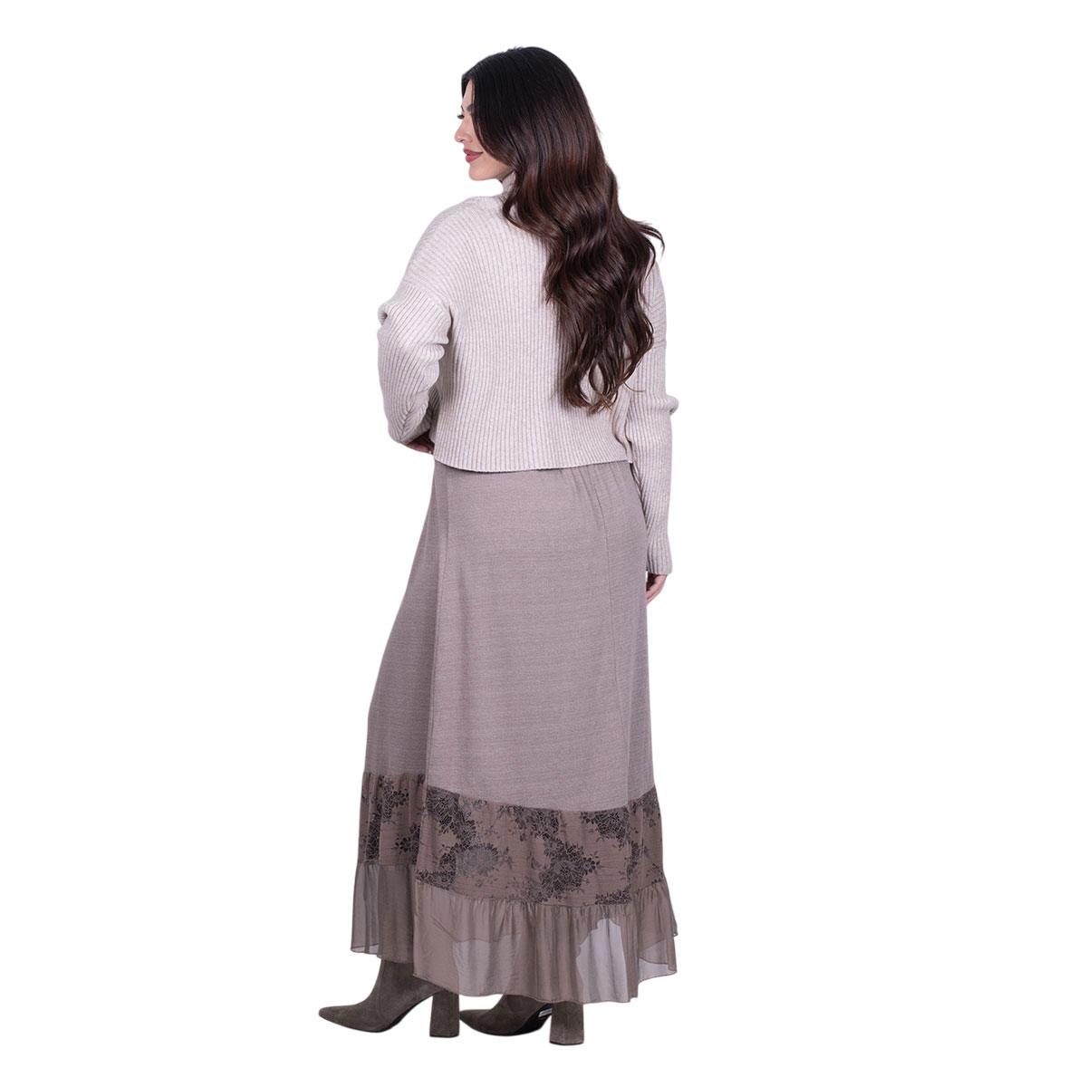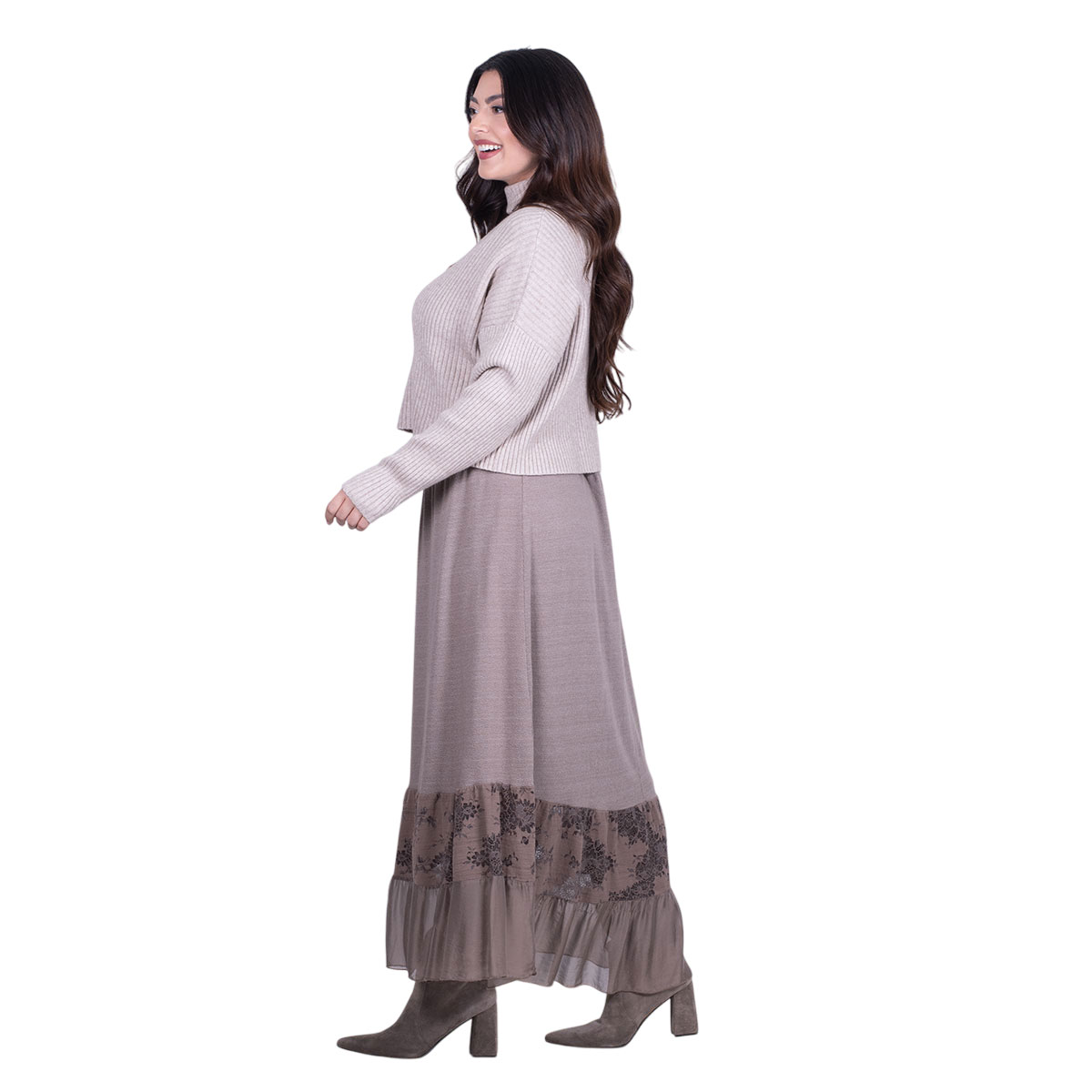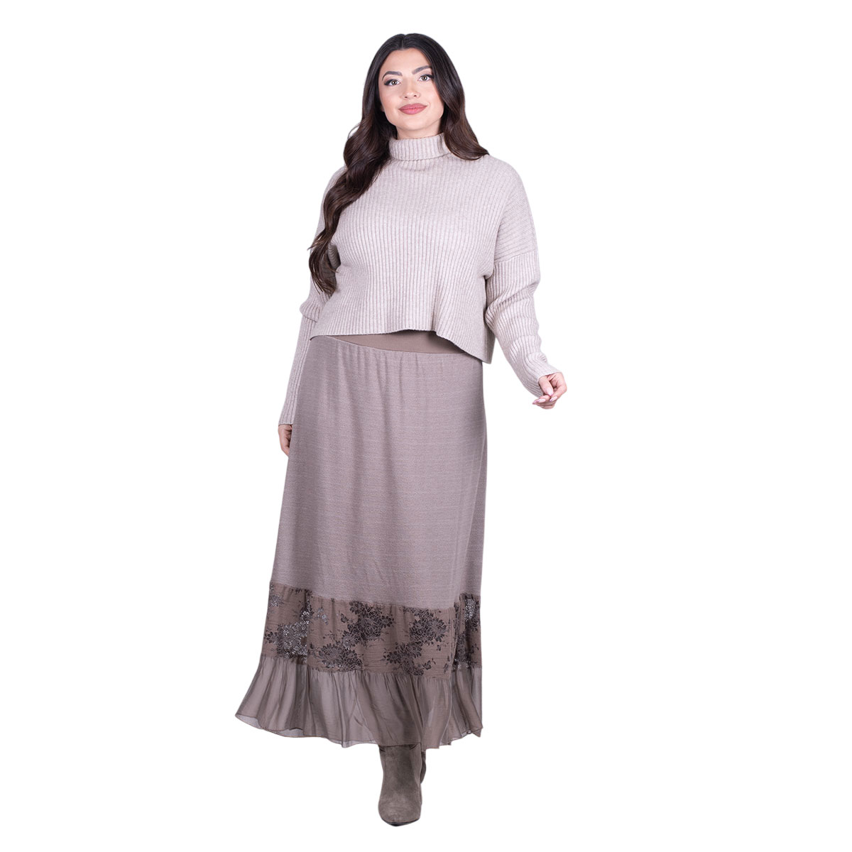 Platinum Φούστα Μόκα Γυναικεία Μακριά Με Ρομαντική Δαντέλα Καθημερινή Free Size – 8930-MG