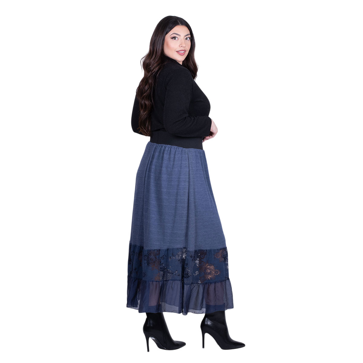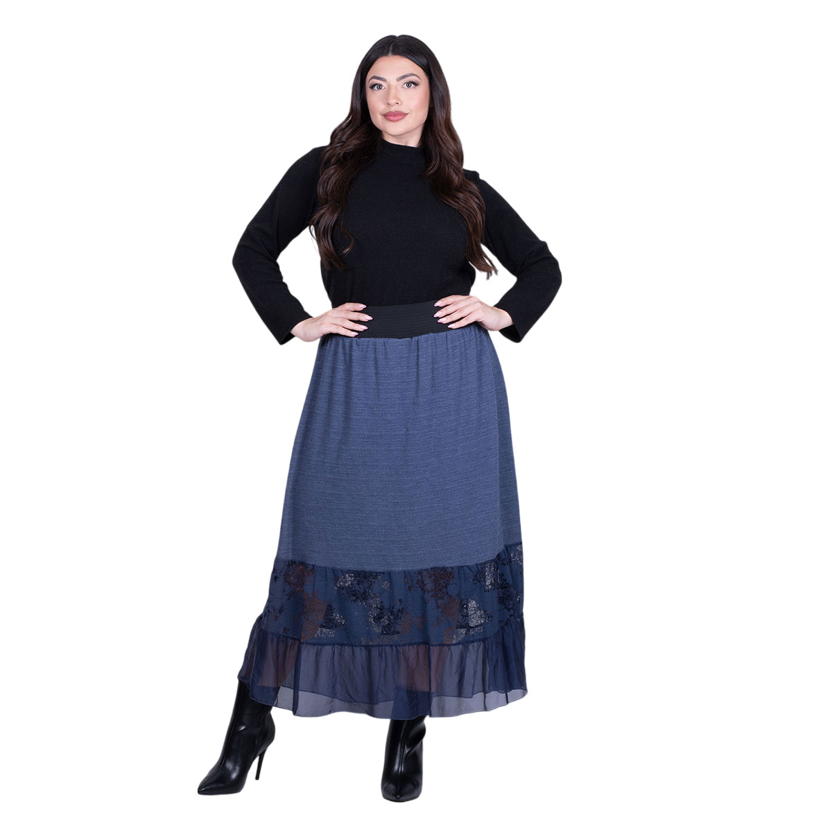 Platinum Φούστα Μπλε Γυναικεία Μακριά Με Ρομαντική Δαντέλα Καθημερινή Free Size – 8930-BL