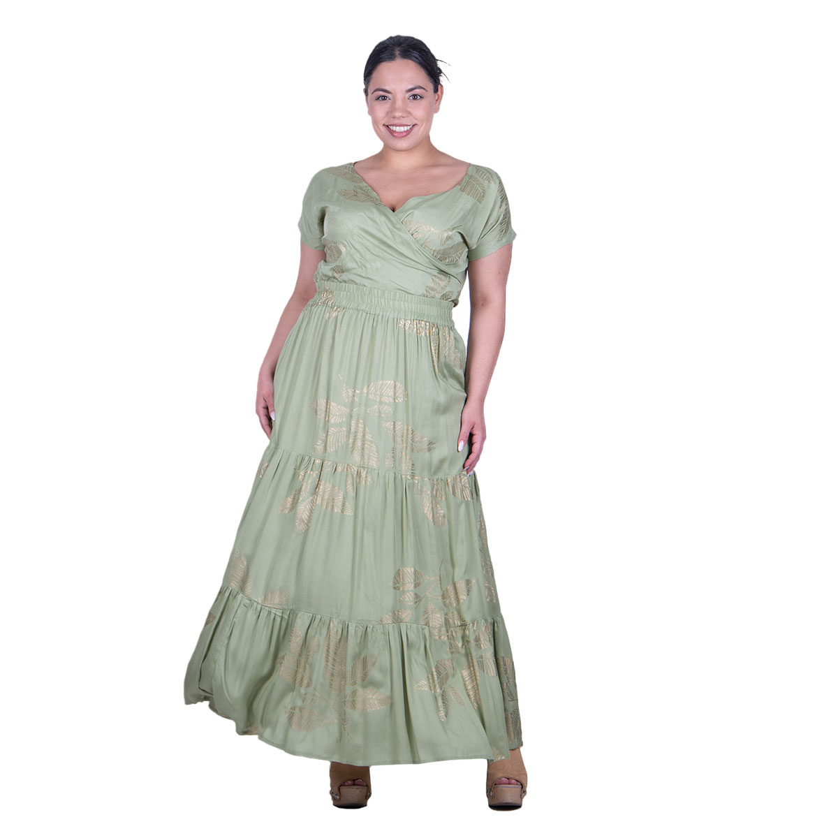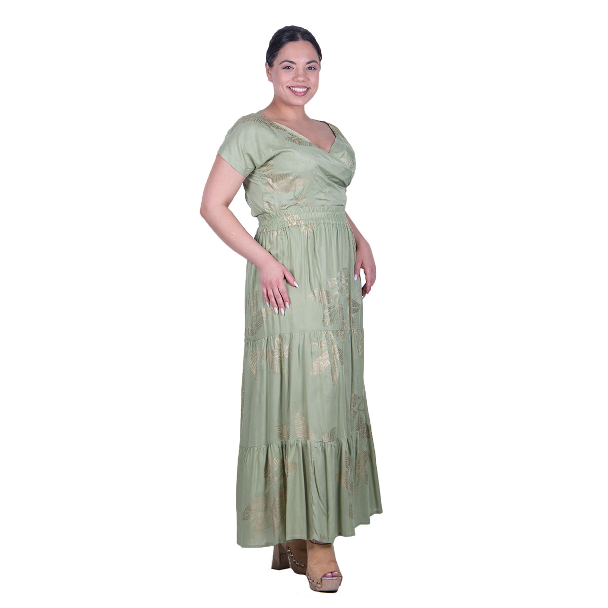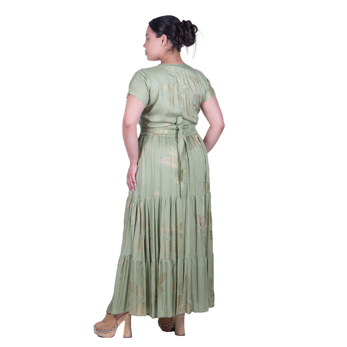 Platinum Φούστα Πράσινη Με Χρυσό Σχέδιο Γυναικεία Μακρυά All Day Free Size – 32448-GR