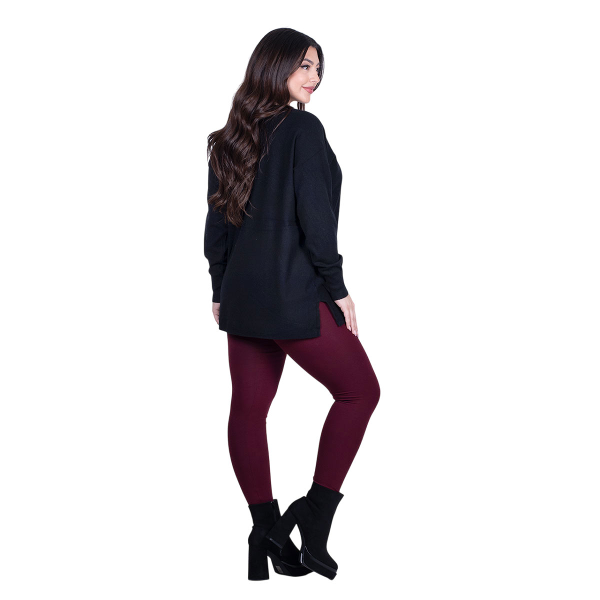 Platinum, νεανική, μαύρη μπλούζα, γυναικεία, φαρδιά, λεπτή, πλεκτή, με στρογγυλή λαιμόκοψη, με δύο μπροστινές τσέπες, μακριά μανίκια με χαμηλή μανικοκόλληση και rib άκρες.