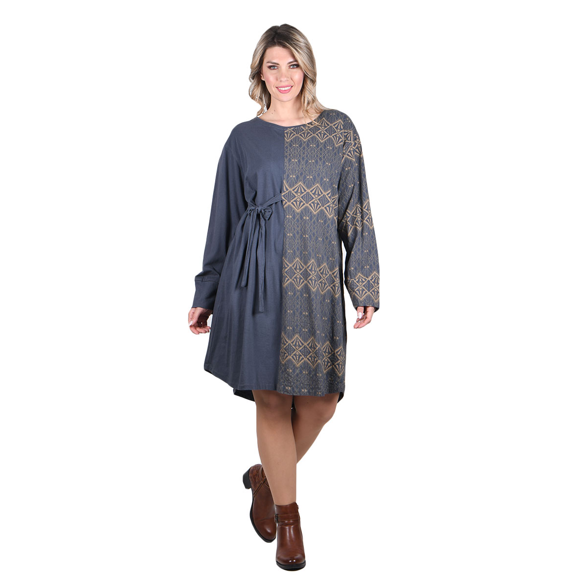 Platinum Φόρεμα Γκρι Γυναικείο Με Εκρού Γεωμετρικά” All Day Free Size – MO-2044-GRZ