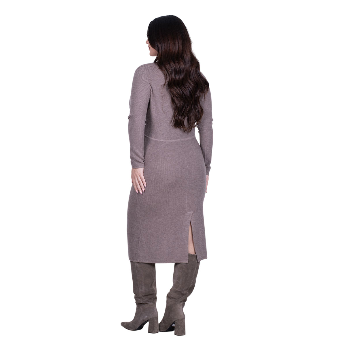 Platinum Φόρεμα Καφέ – Μόκα Γυναικείο Midi Casual Πλεκτό All Day Free Size – IT-8027-B