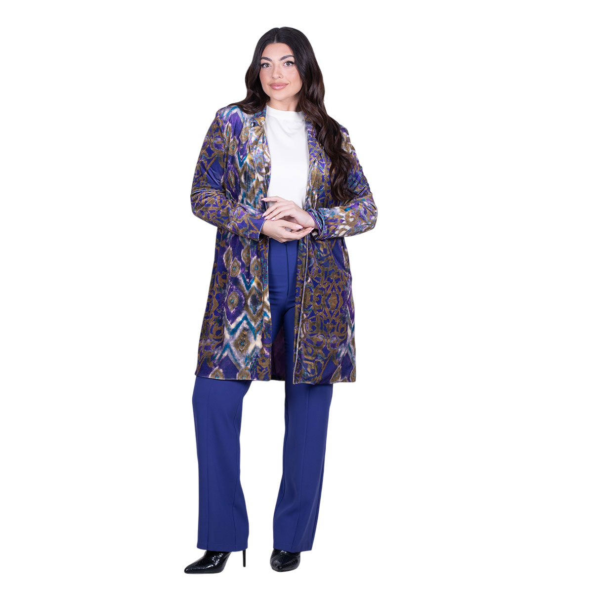 Platinum Ημίπαλτο Μωβ Με Πολύχρωμα Γήινα Σχέδια Γυναικείο Καθημερινό Free Size – IT-64-GU-P