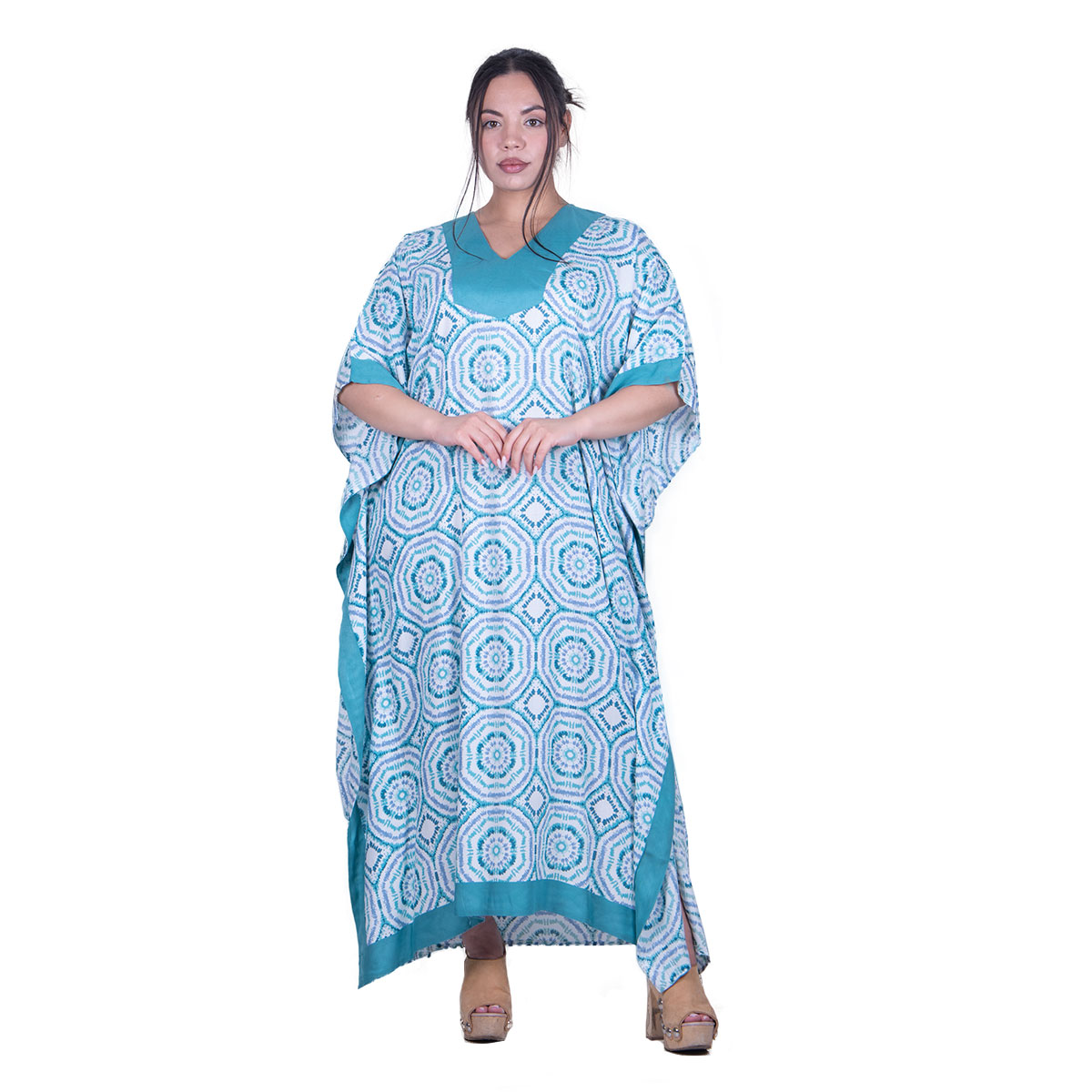 Platinum Καφτάνι Aqua Με Σχέδια Γυναικείο Maxi Δροσερό All Day Free Size – 32427-34-TR