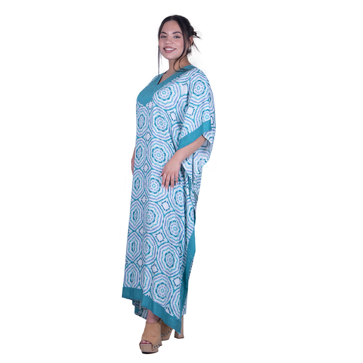Platinum Καφτάνι Σε Θαλασσινούς Χρωματισμούς & Σχέδια Γυναικείο Maxi Δροσερό Free Size – 32427-36