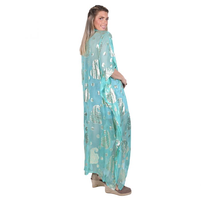 Platinum Καφτάνι – Τουνίκ Aqua Γυναικείο Μακρυά Με Χρυσά Σχέδια Free Size – 423134-ZQ