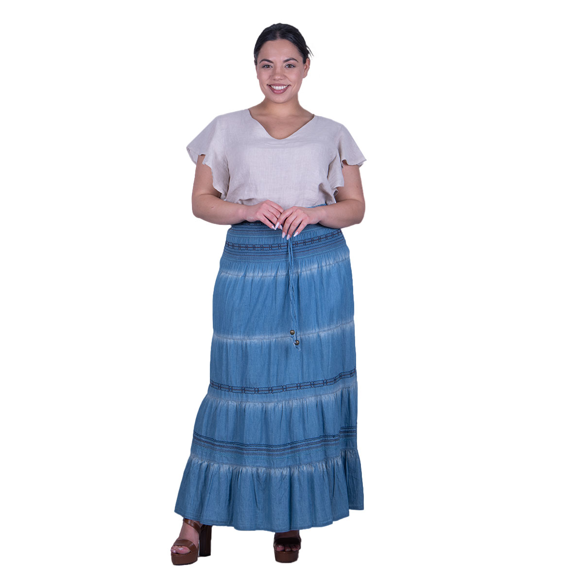 Platinum Φούστα Βlue Jean Γυναικεία Καλοκαιρινή Klos Μακριά Τσιγγάνικη All Day Free Size – 001-A