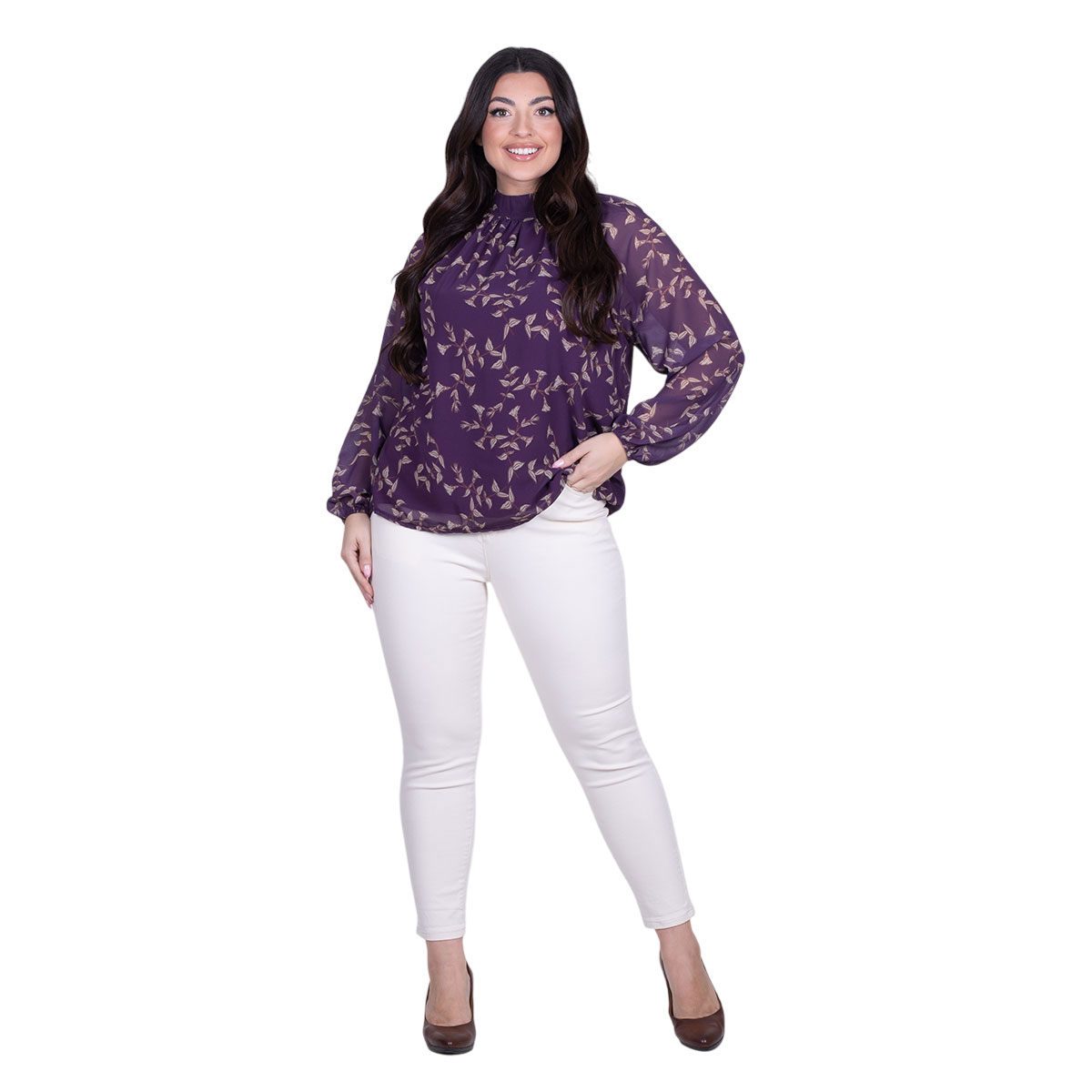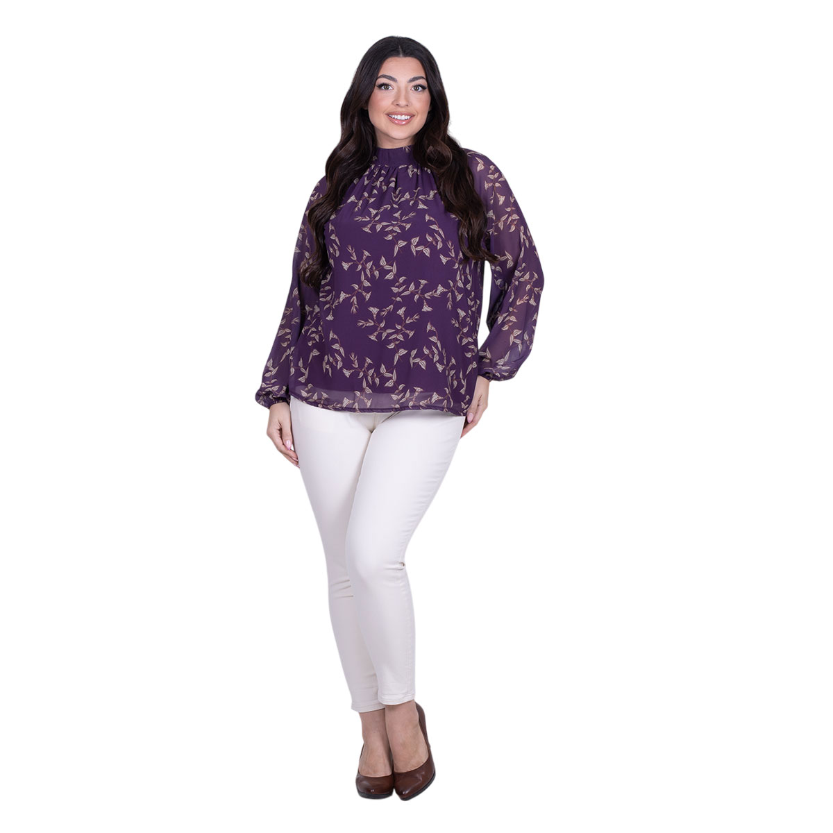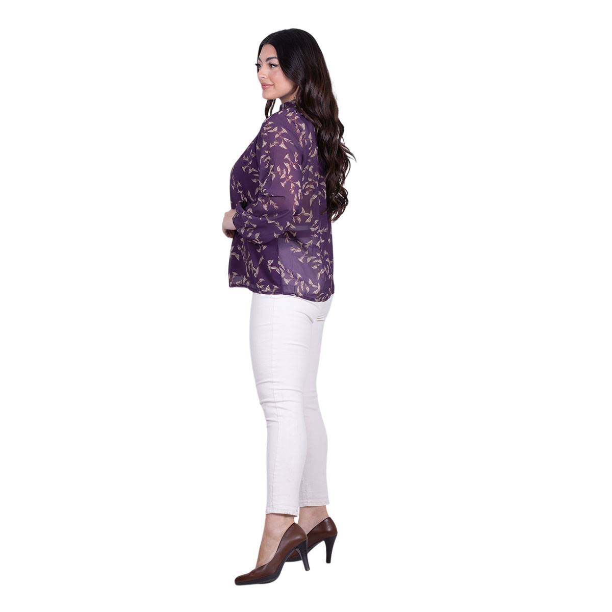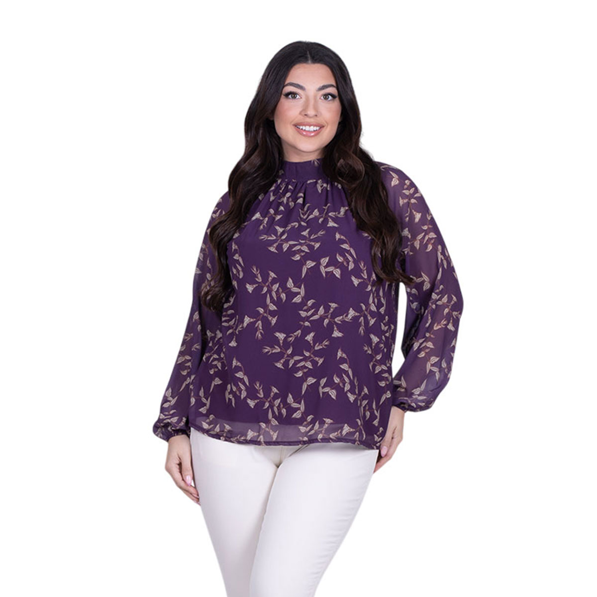 Platinum Μπλούζα Δαμασκηνί Με Εκρού Λουλούδια Μακρυμάνικη Γυναικεία All Day Free Size – 183-GU