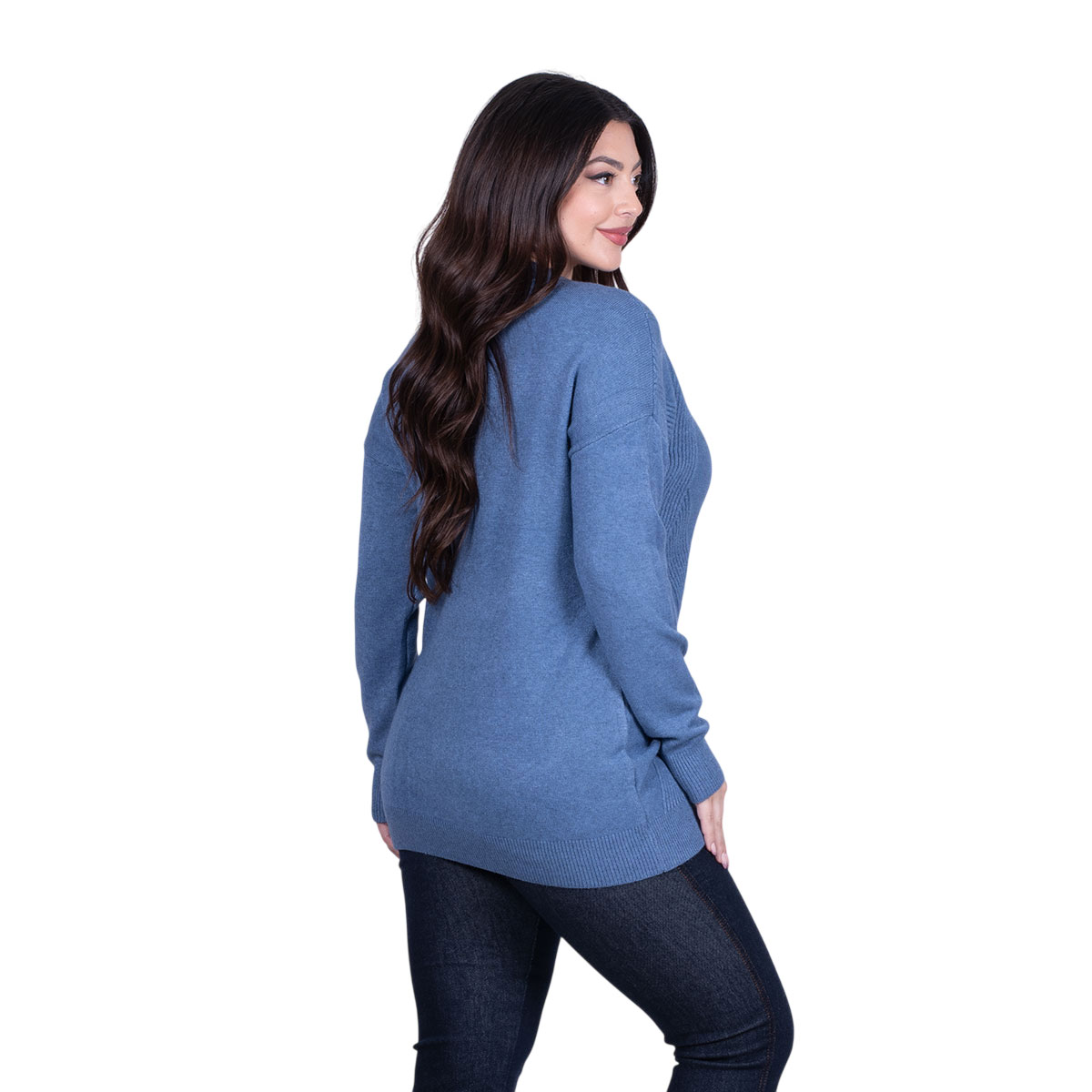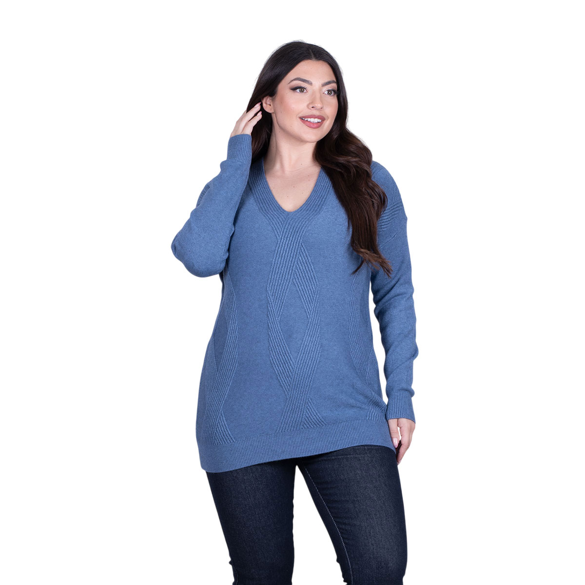 Platinum Μπλούζα Ραφ – Μπλε Γυναικεία Μακριά Με Ντεκολτέ Πλεκτή All Day Free Size – 3283-BL