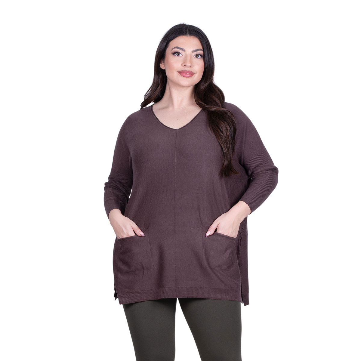 Platinum Μπλούζα Καφέ Γυναικεία Πλεκτή Με Τσέπες Αll Day Free Size – ΙΤ-20205-BR