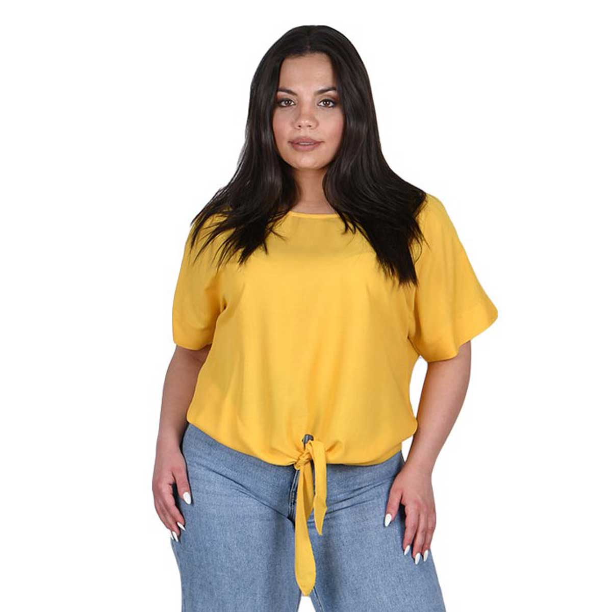 Platinum Μπλούζα Κίτρινη Γυναικεία Κοντομάνικη Ζαπονέ All Με Δέσιμο Free Size – 12455-LW