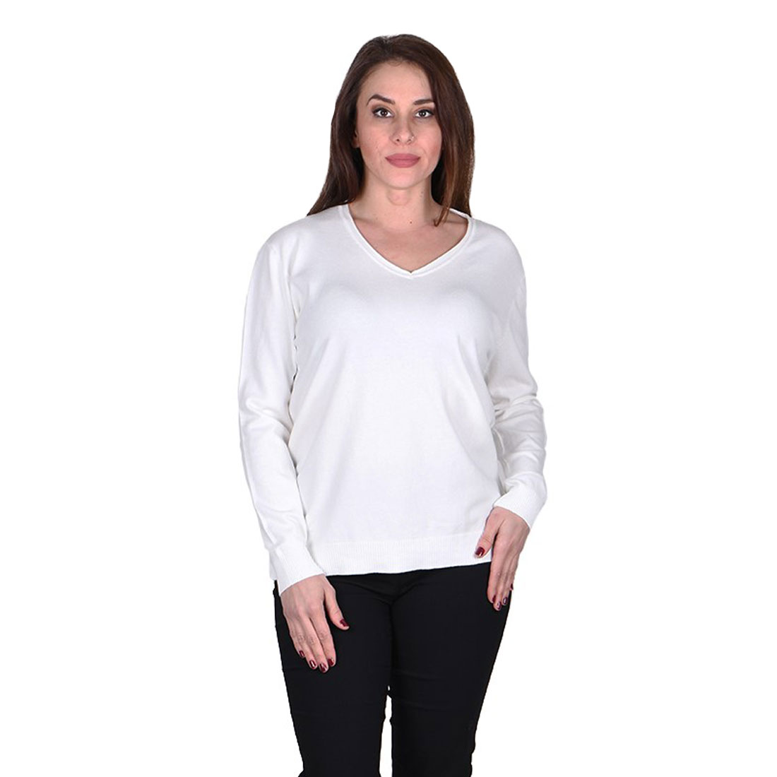 Platinum Μπλούζα Λευκή Γυναικεία Πλεκτή Λεπτή Με Ντεκολτέ Casual All Day – IT-6020-W