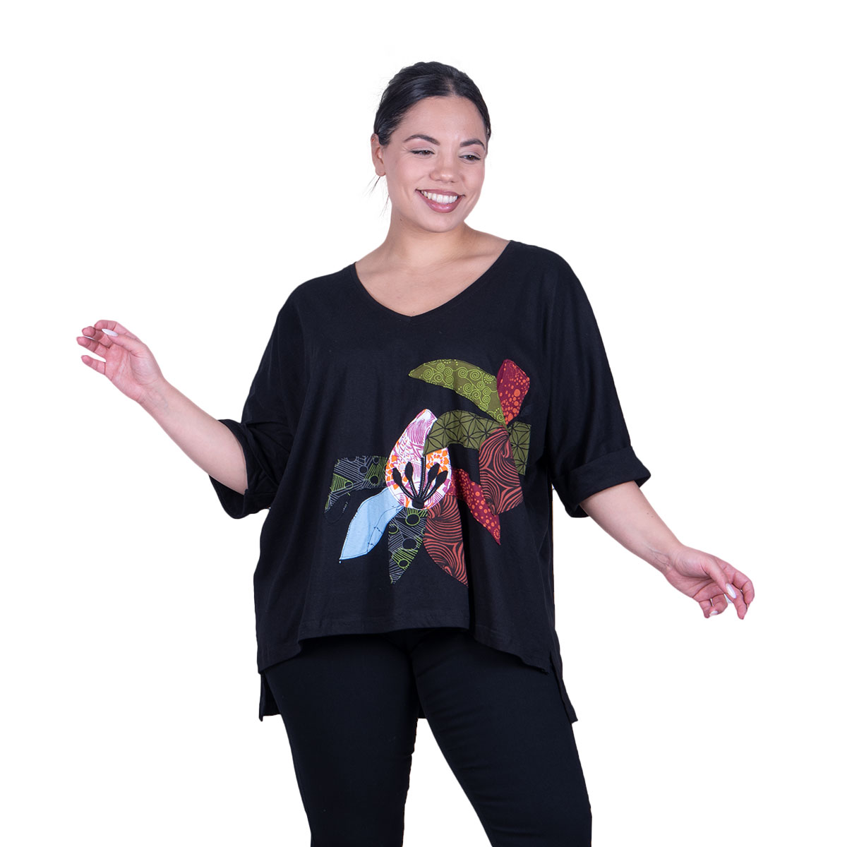 Platinum Μπλούζα Μαύρη Γυναικεία Με Πολύχρωμα Patchwork Σχέδια Τρουακάρ Casual Free Size – 112-FS