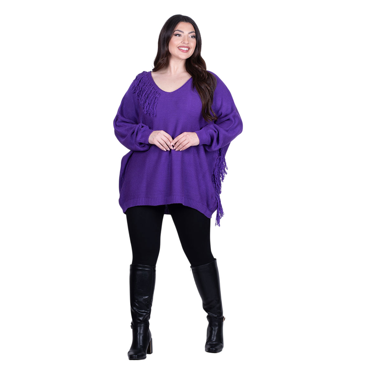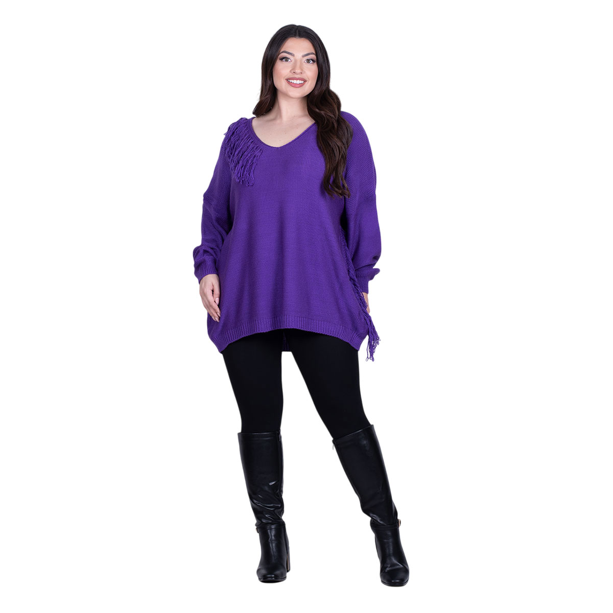 Platinum Μπλούζα Μωβ Γυναικεία Πλεκτή Μακριά Φαρδιά Με Ντεκολτέ & Κρόσσια Casual Free Size – 24143-MV