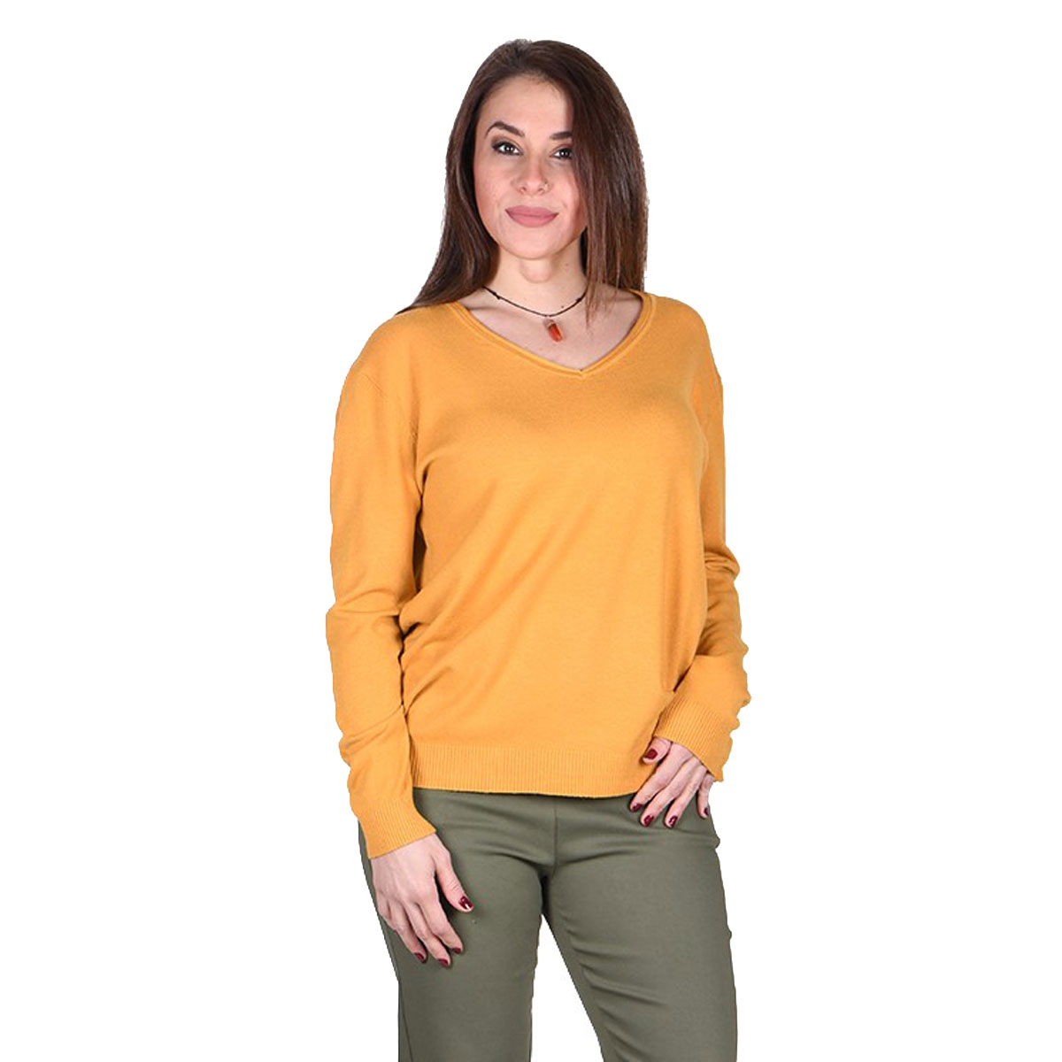 Platinum Μπλούζα Ώχρα Γυναικεία Πλεκτή Λεπτή Με Ντεκολτέ Casual Free Size – IT-6020-OM