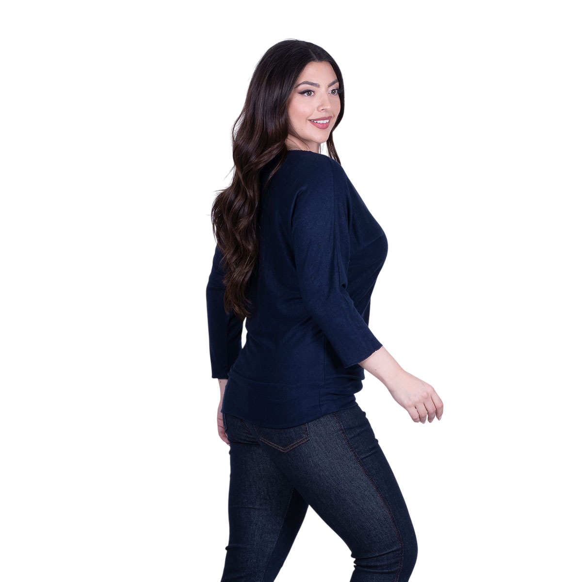 Platinum Μπλούζα Μπλε Σκούρο Γυναικεία Πλεκτή Φαρδιά Με Ντεκολτέ Casual All Day Free Size – 6266-BL