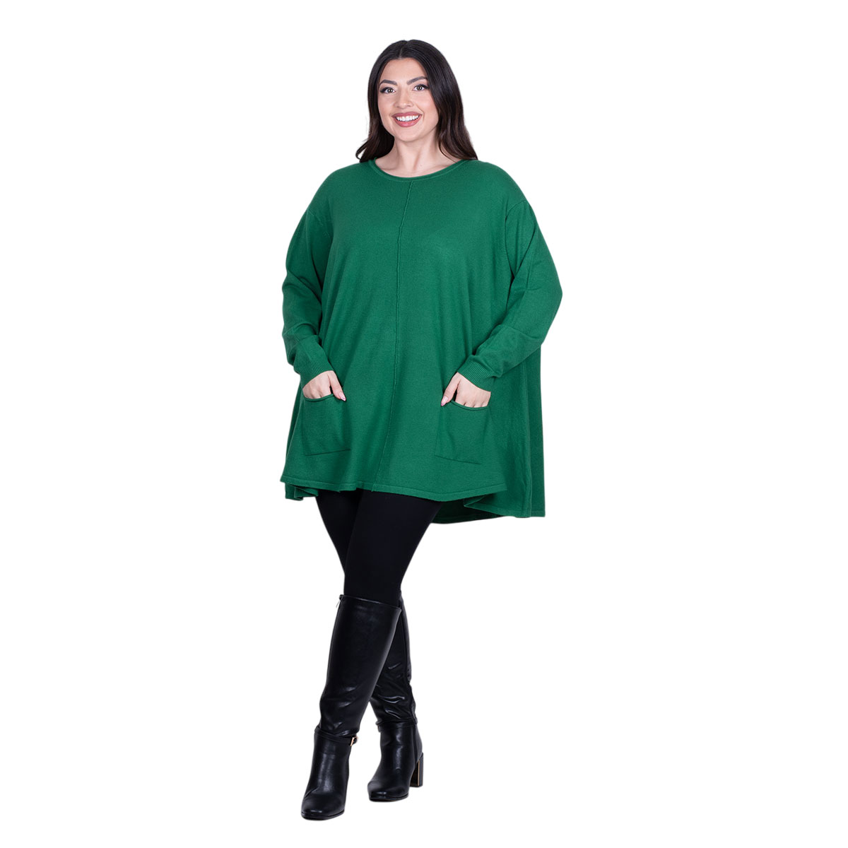 Platinum, καθημερινή, μπλούζα πράσινη, γυναικεία, φαρδιά, μακριά, κλος, με μικρή οβάλ λαιμόκοψη, μακριά μανίκια με rib άκρες και δύο εξωτερικές τσέπες στη μπροστινή της πλευρά.