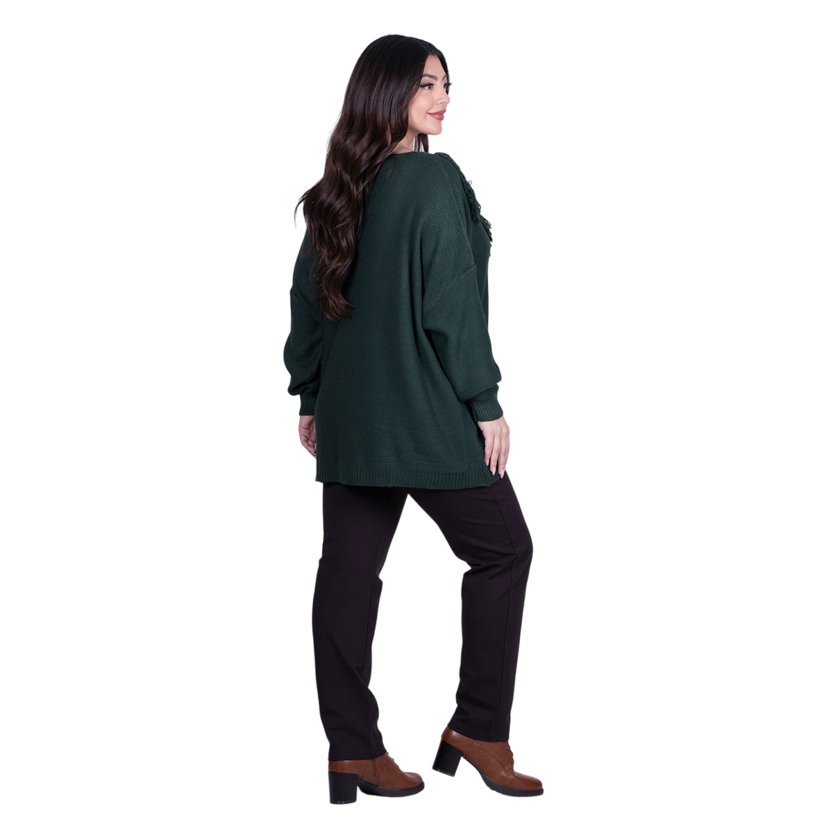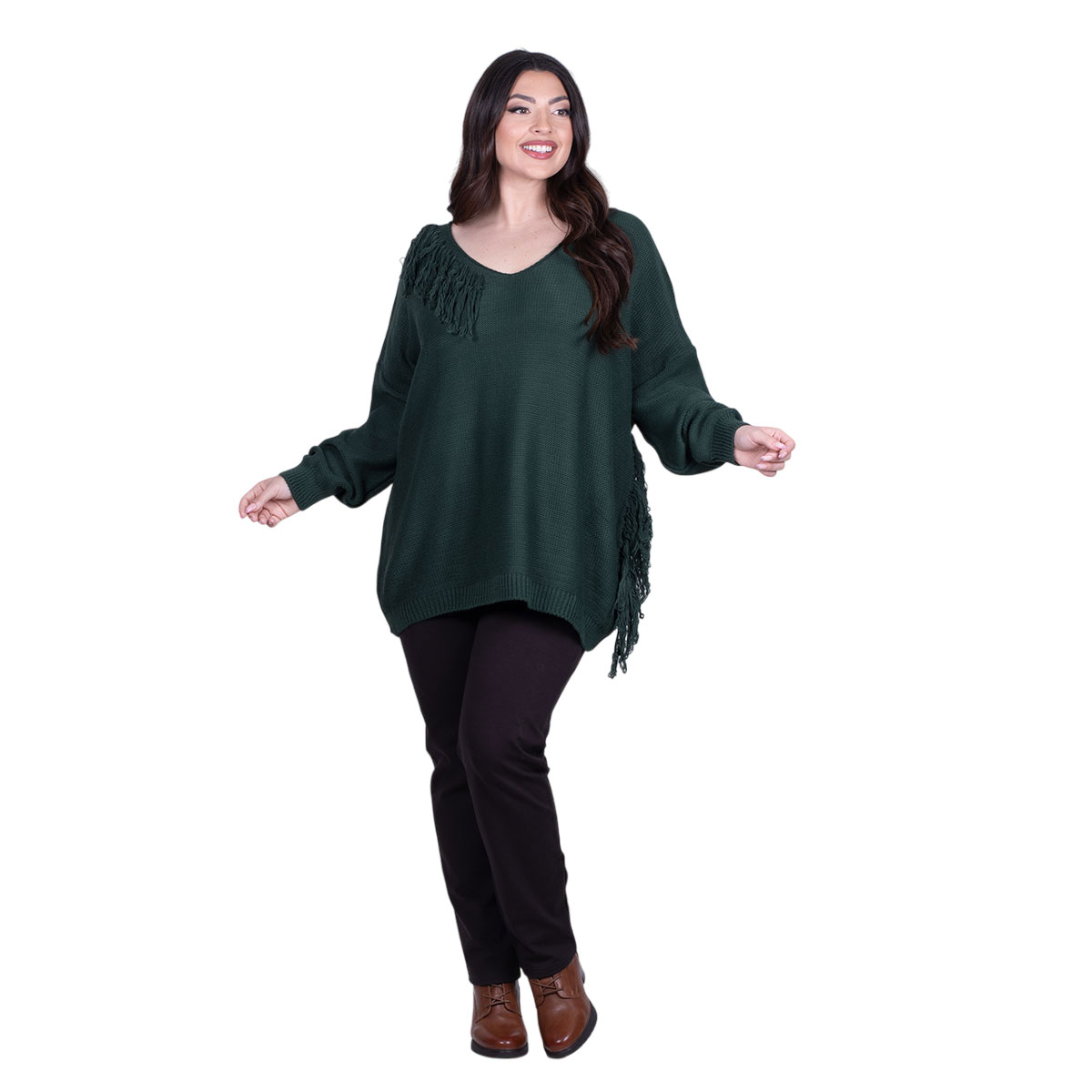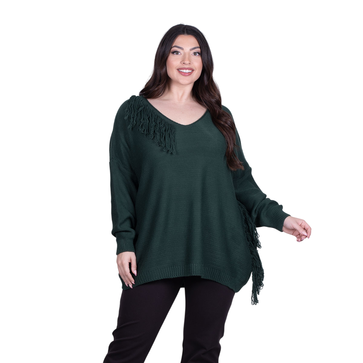 Platinum Μπλούζα Πράσινη Γυναικεία Πλεκτή Μακριά Φαρδιά Με Ντεκολτέ & Κρόσσια Casual Free Size – 24143-GR
