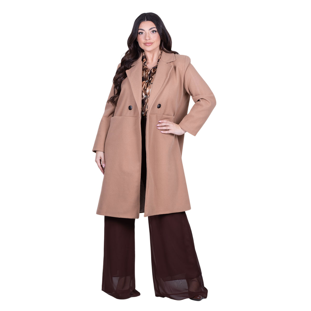 Platinum Παλτό Camel Γυναικείο Με Κουμπιά & Τσέπες All Day Free Size – 6067-MC
