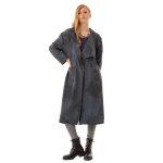Platinum Καπαρντίνα Γκρι Με Ανθρακί Σχέδια Γυναικείο Με Γιακά Midi Casual All Day Free Size – 153-GU