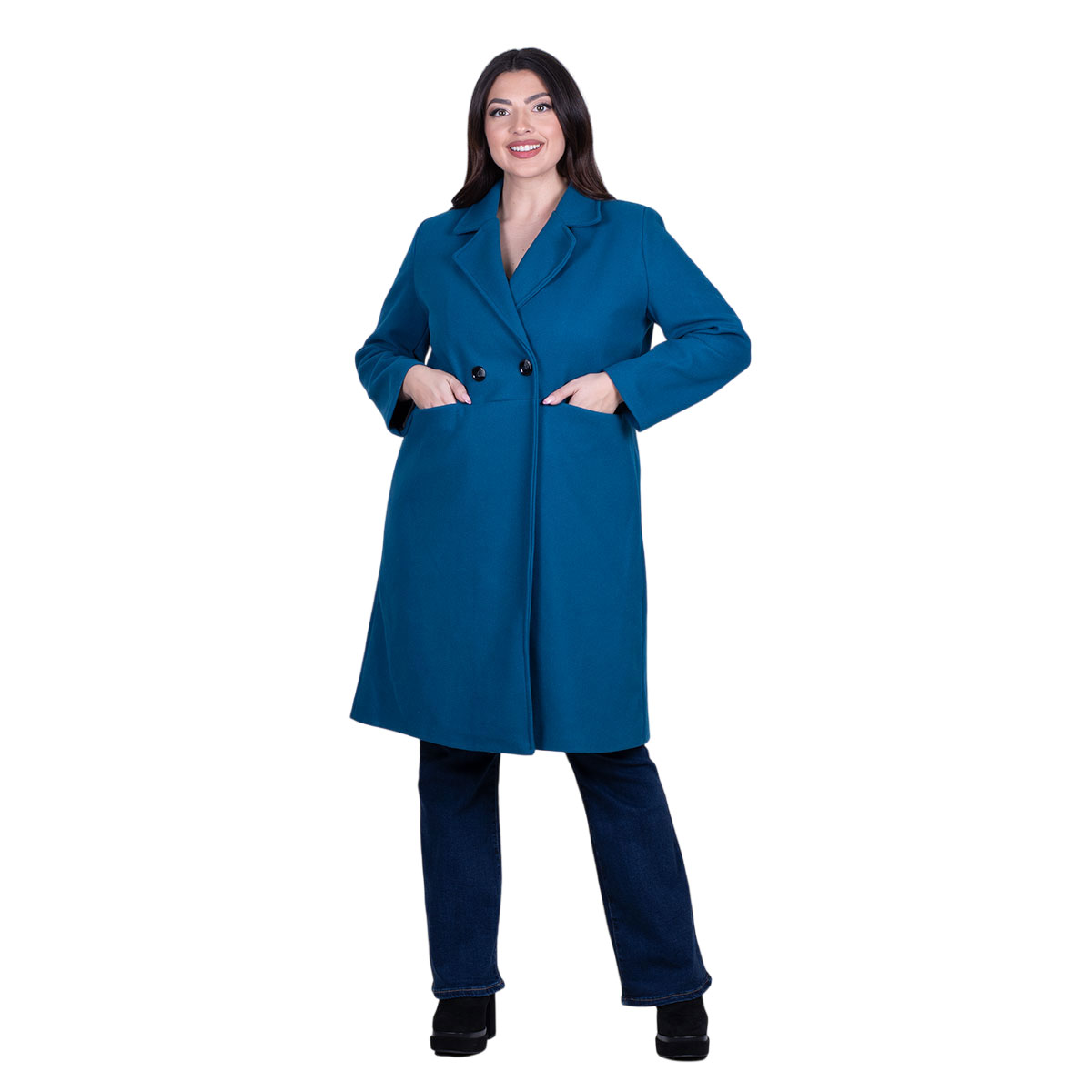 Platinum, διαχρονικό, παλτό σε ανοικτό πετρολ χρώμα, γυναικείο και γιακά με πέτο. Στο μπροστινό του μέρος, έχει εσωτερικές τσέπες και κουμπώνει με δύο κουμπιά και έχει εσωτερικό κούμπωμα με κουμπί.