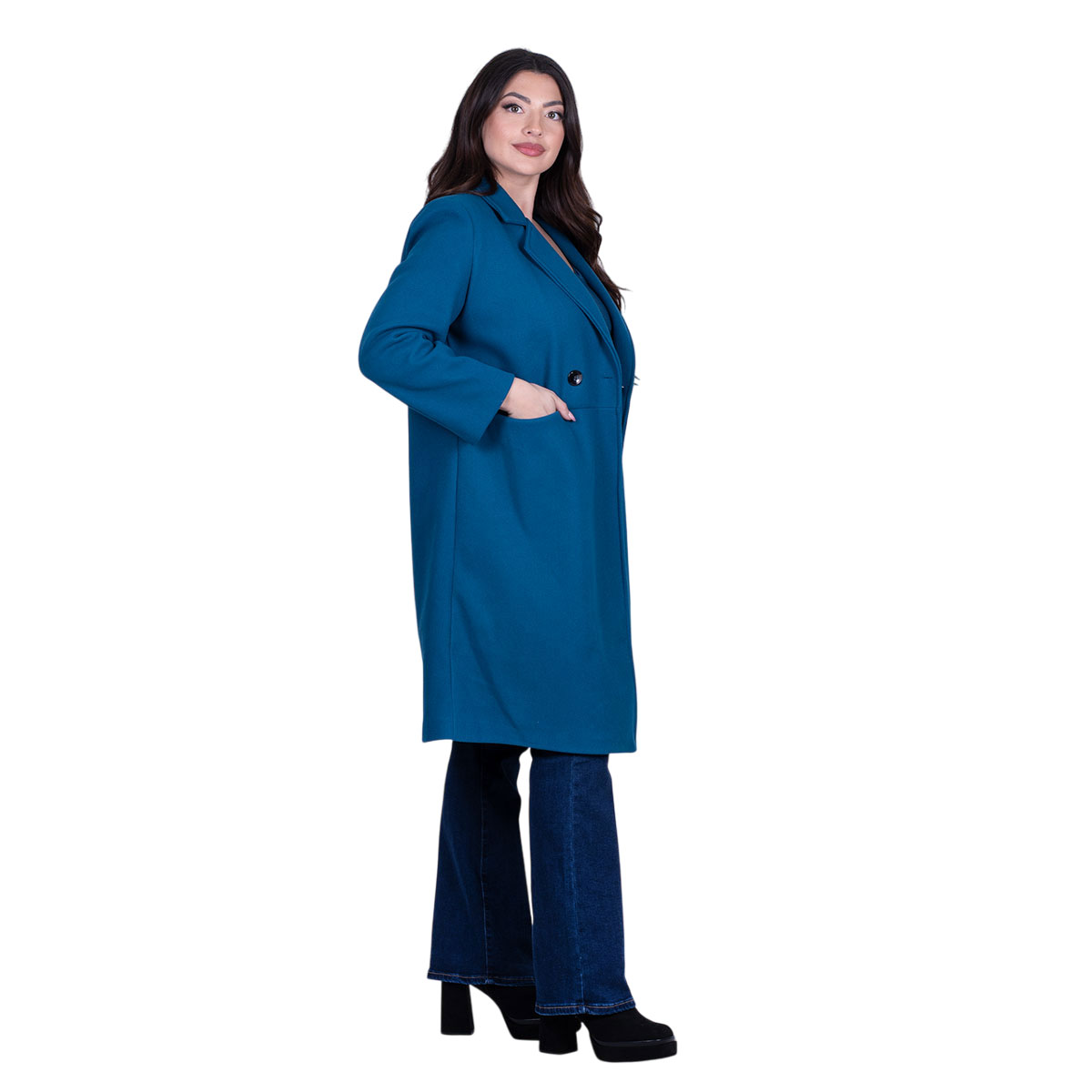 Platinum Παλτό Πετρολ Γυναικείο Με Κουμπιά & Τσέπες All Day Free Size – 6067-PL