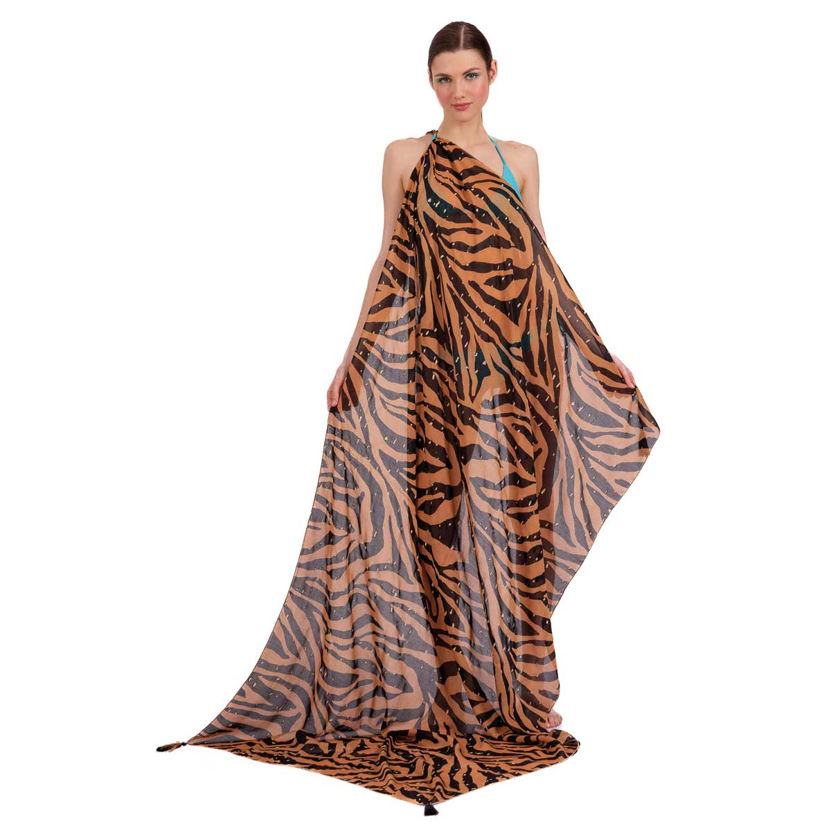 Platinum, νεανικό, παρεό – μαντήλι, μαύρο με καφέ animal print σχέδια, γυναικείο, casual και καθημερινό. Εντυπωσιακό και αέρινο ! Κολακεύει όλα τα γυναικεία σώματα!
