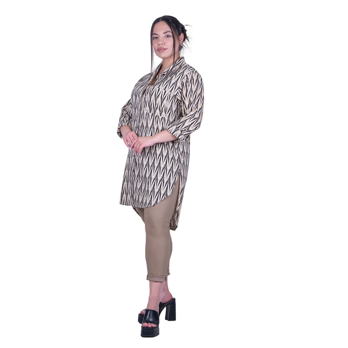 Platinum Μπεζ Πουκάμισο Γυναικείο Mακρυμάνικο Με Πιέτες Ασύμμετρο Free Size – IT-1068-Ζxl