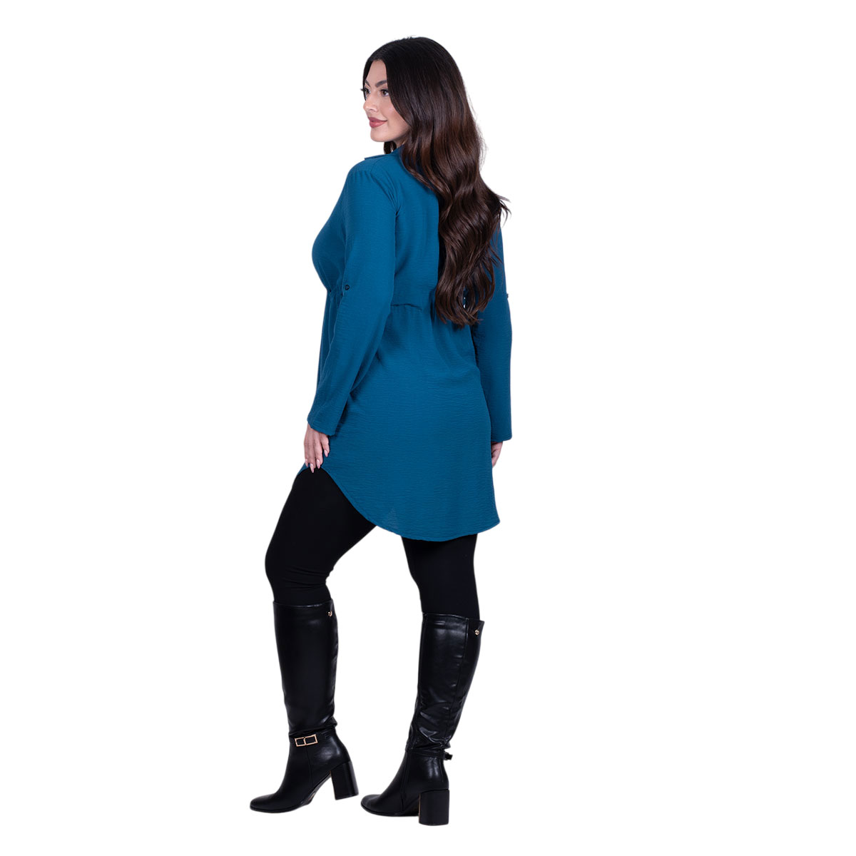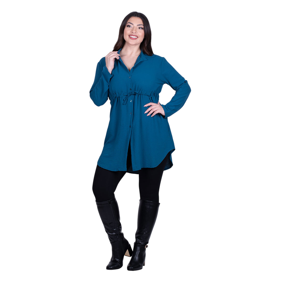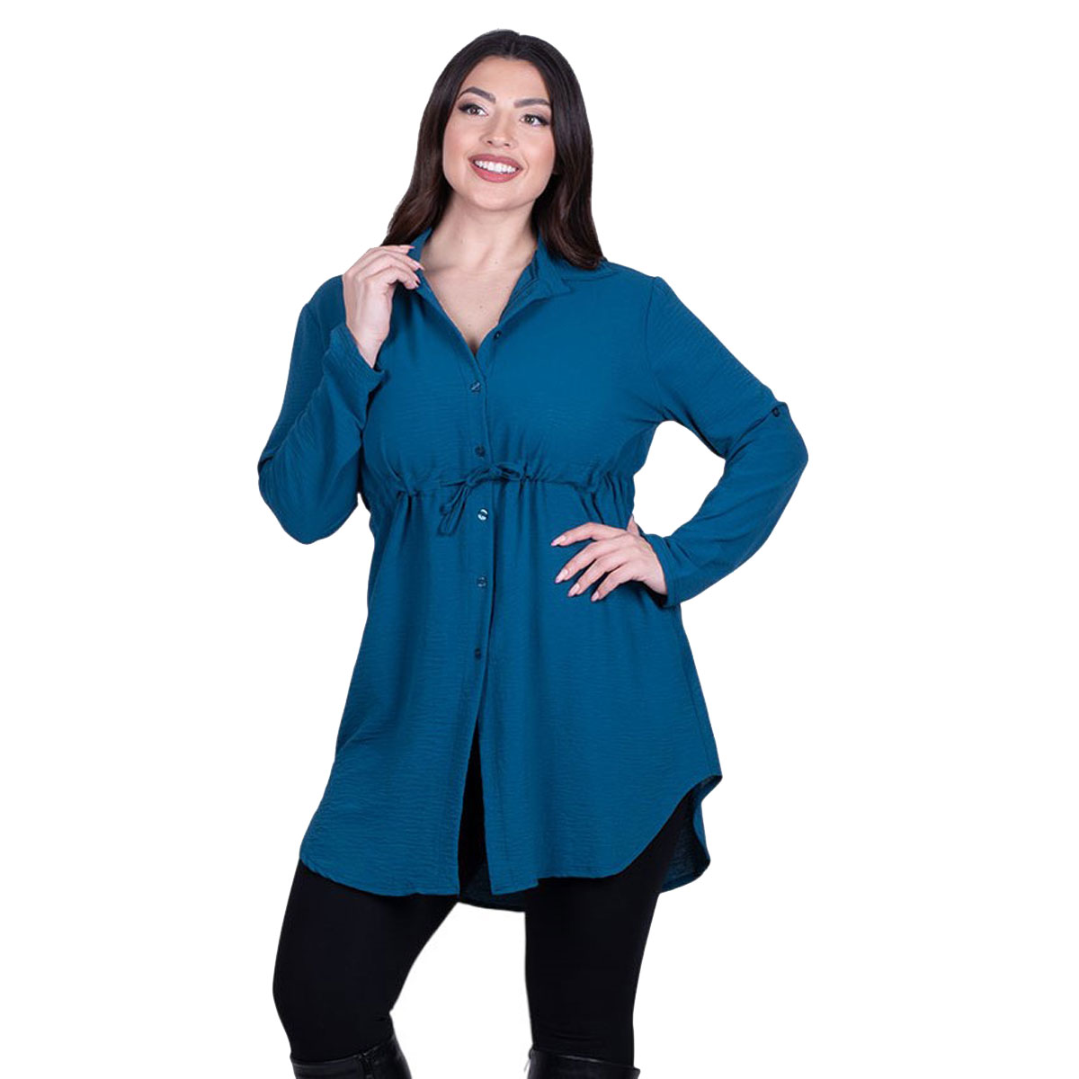 Platinum Πουκαμίσα Πετρολ Γυναικεία Σεμιζιέ Με Κουμπιά Και Ζώνη All Day Free Size -1363-RL