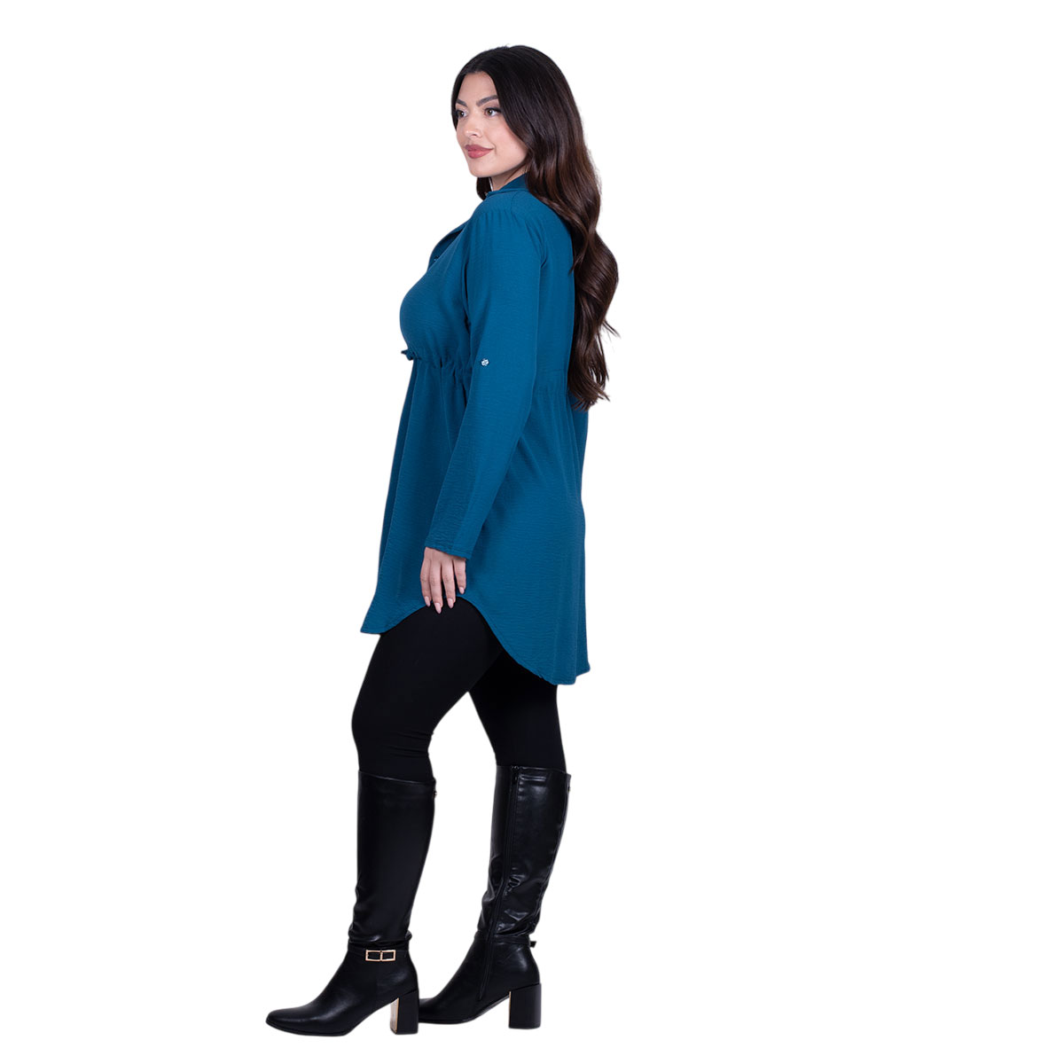 Platinum, νεανικό, πουκαμίσα πετρολ, γυναικεία, σεμιζιέ, με εσωτερική ζώνη και μανίκια αναδιπλώμενα με κουμπί. Κλείνει με 8 κουμπιά.