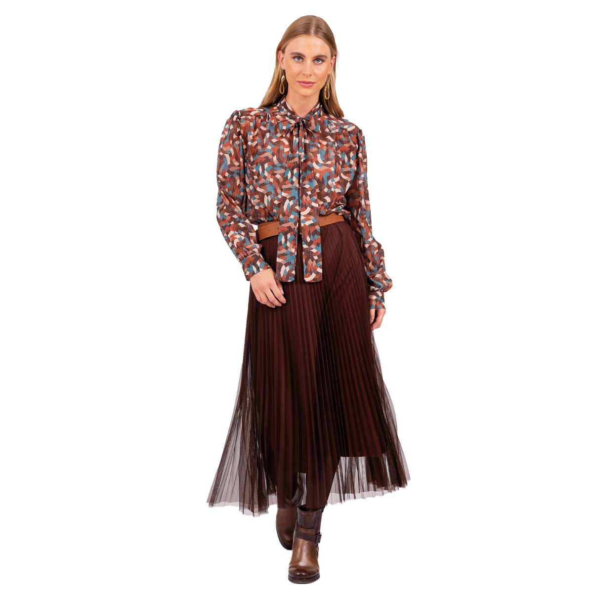 Platinum Πουκάμισο Καφέ Γυναικείο Με Γεωμετρικά Χρωματιστά Σχέδια Mακρυμάνικο All Day Free Size – 1322