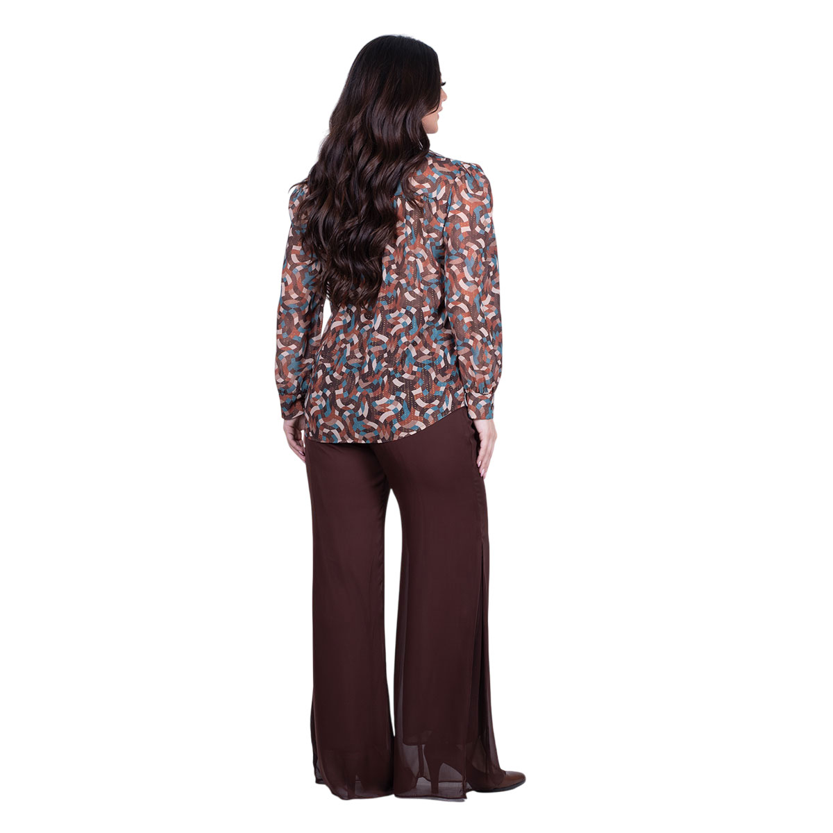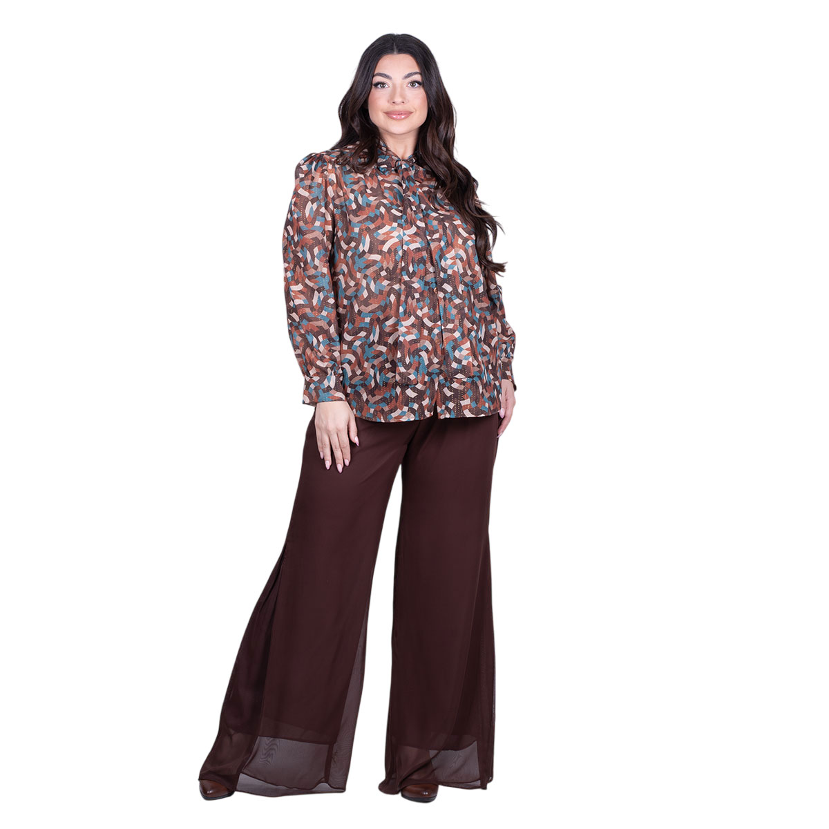 Platinum Πουκάμισο Καφέ Γυναικείο Με Γεωμετρικά Χρωματιστά Σχέδια Mακρυμάνικο All Day Free Size – IT-1322-BR