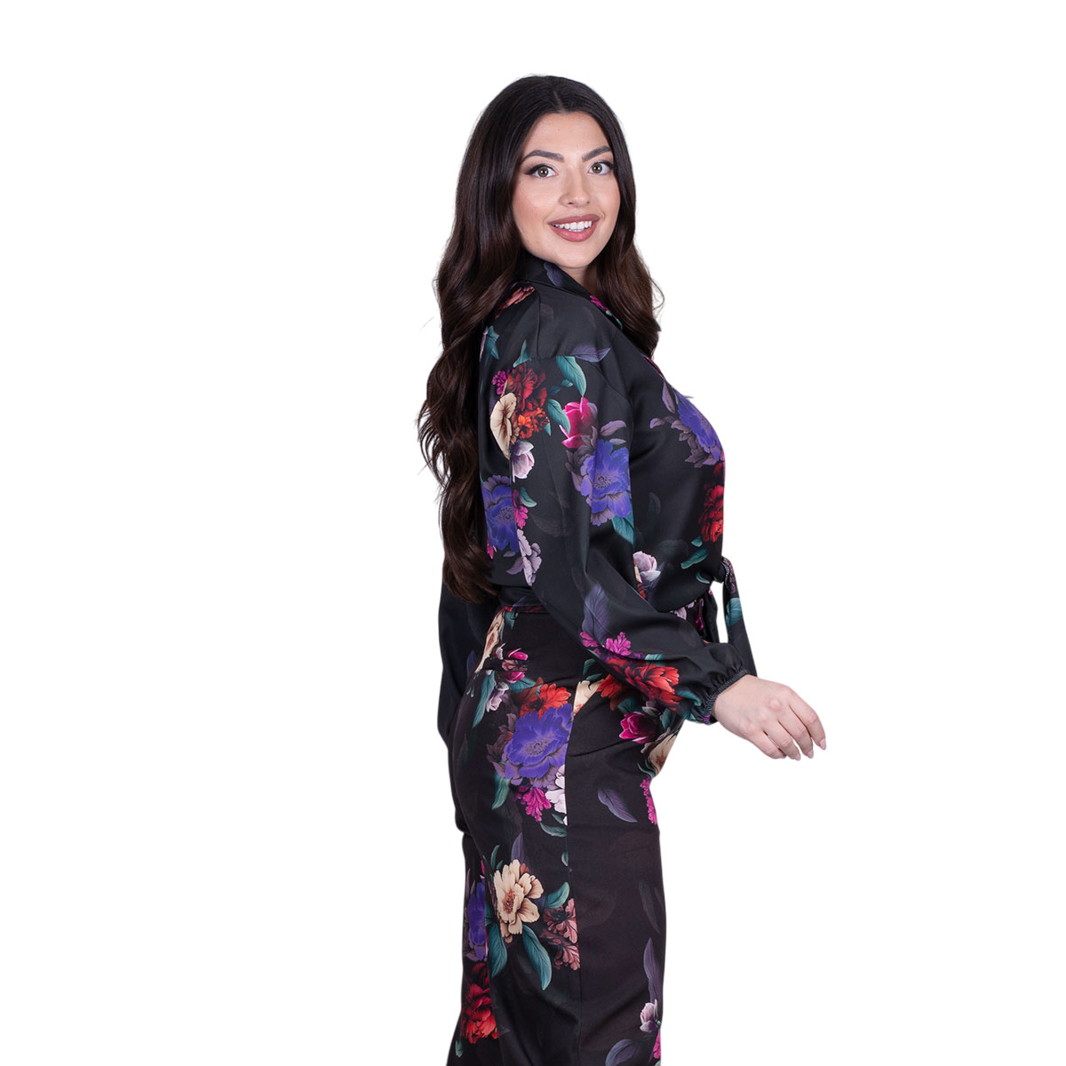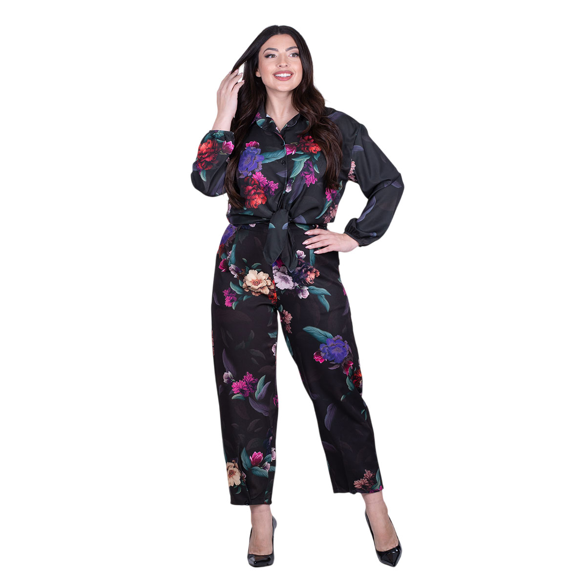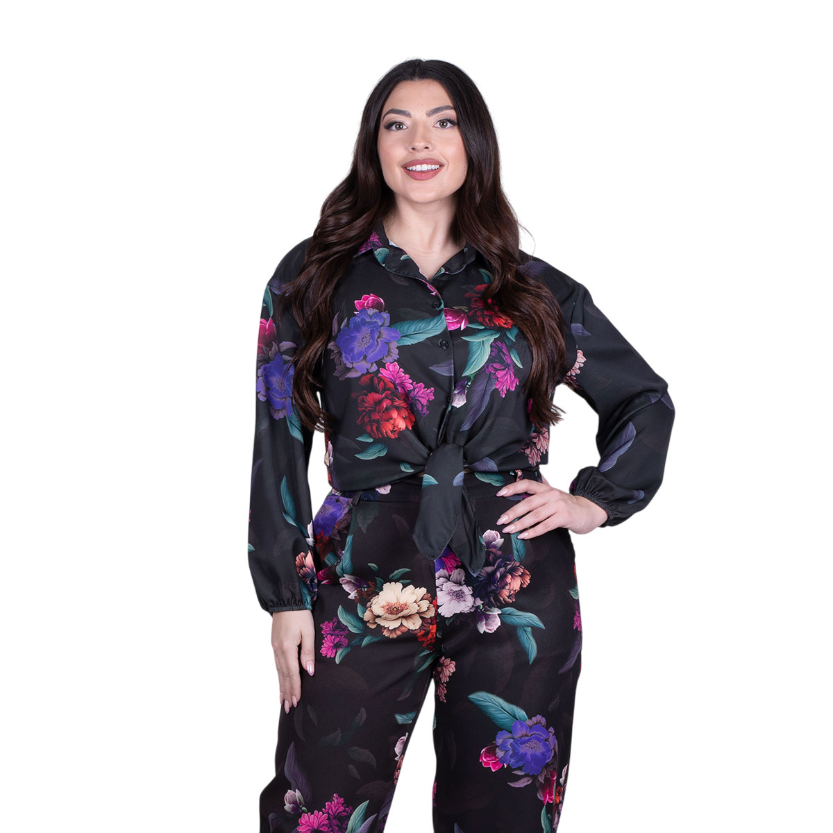 Platinum Πουκάμισο Μαύρο Με Πολύχρωμα Floral Γυναικείο Mακρυμάνικο Δετό All Day Free Size – 172-GU