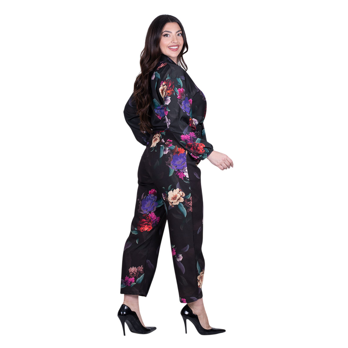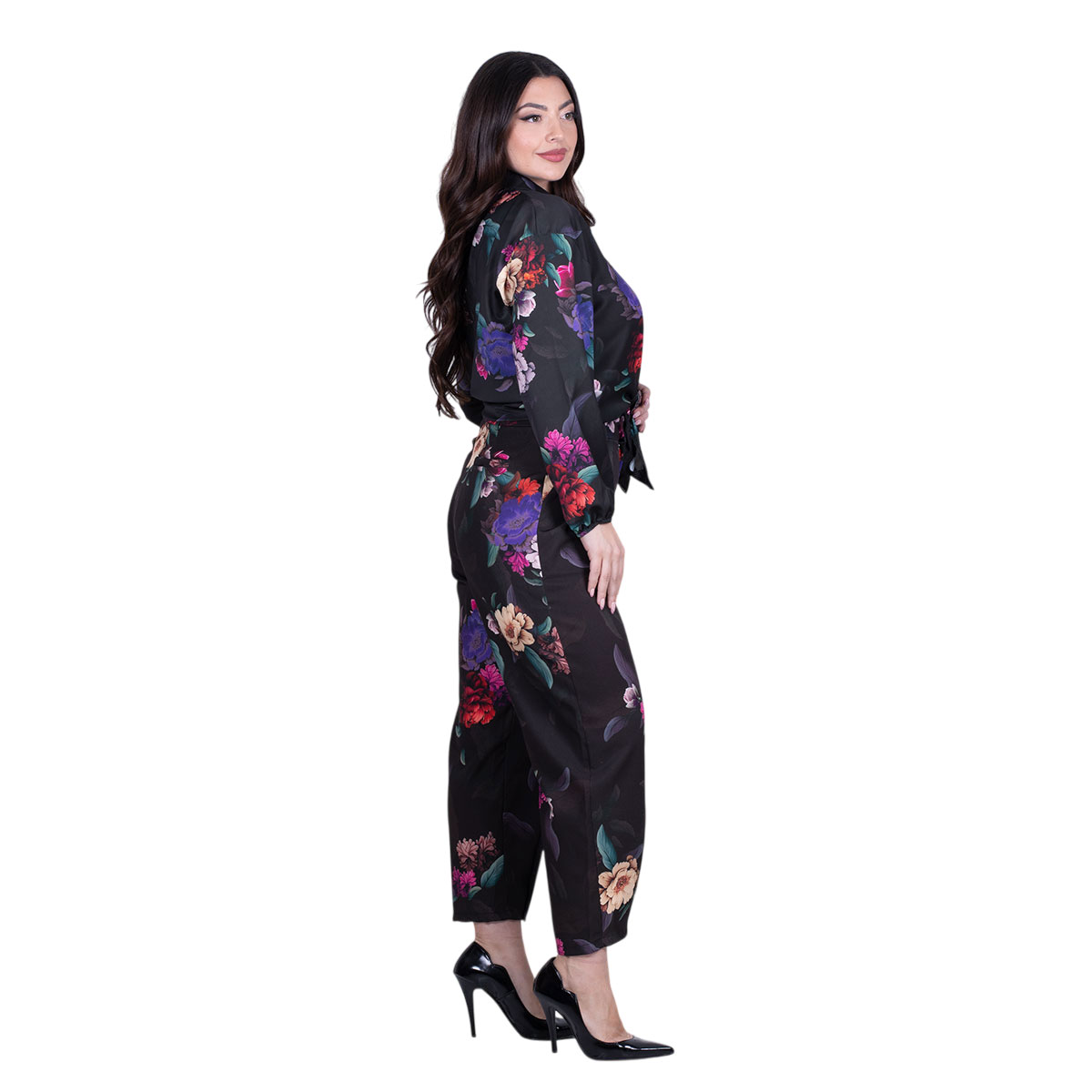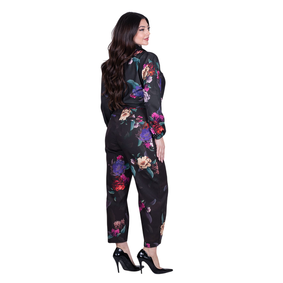 Platinum Πουκάμισο Μαύρο Με Πολύχρωμα Floral Γυναικείο Mακρυμάνικο Δετό All Day Free Size – 172-GU