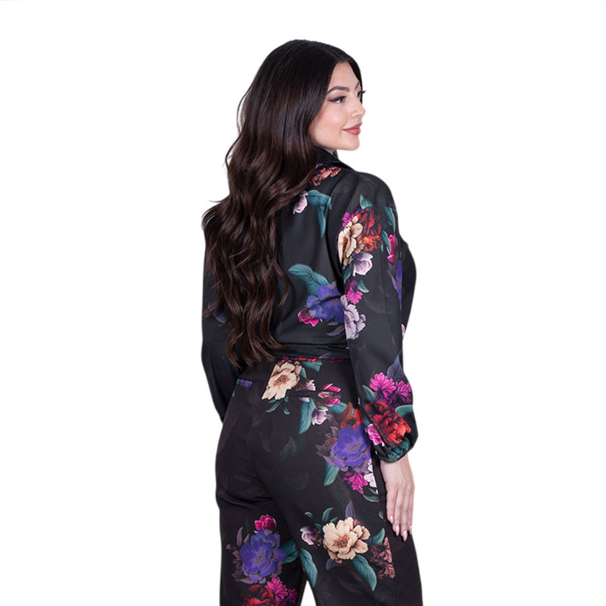 Platinum, νεανικό, πουκάμισο μαύρο με πολύχρωμα floral σχέδια, γυναικείο, καθημερινό, με γιακά, μακρυμάνικο με χαμηλή μανικοκόλληση και λάστιχο στο τελείωμα του. Κλείνει με 3 κουμπιά και το δετό του σχέδιο. Ένα καλοδιαλεγμένο πουκάμισο, που μπορεί να φορεθεί ως casual με τζιν μέχρι και με κομψά business παντελόνια και φούστες. Όμορφο σχέδιο και girly!