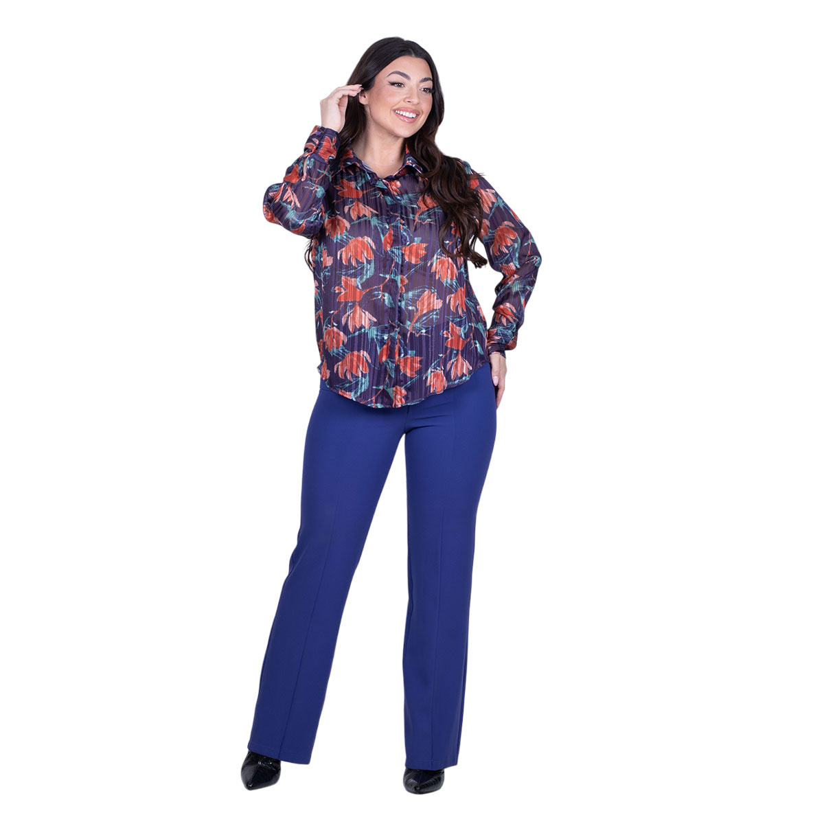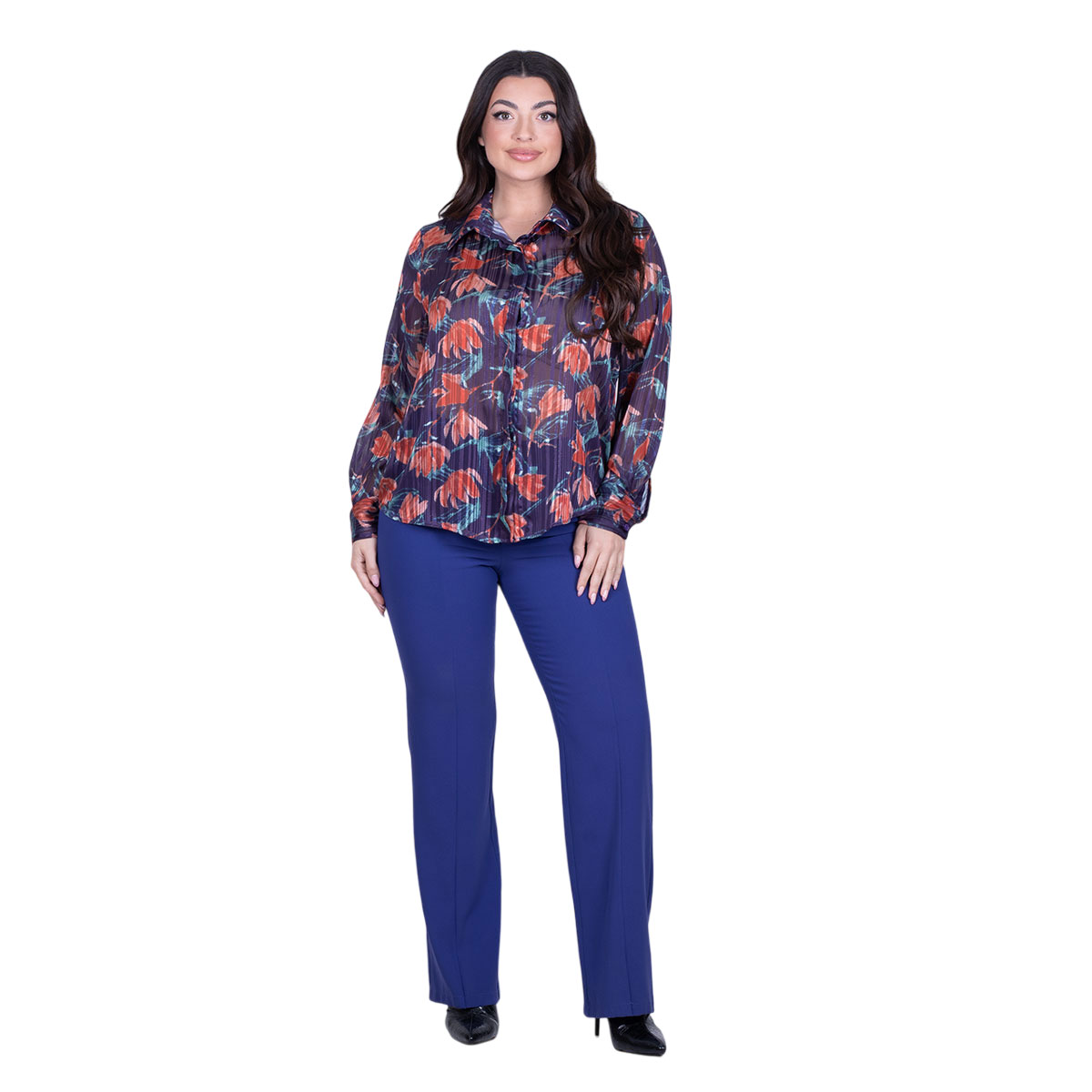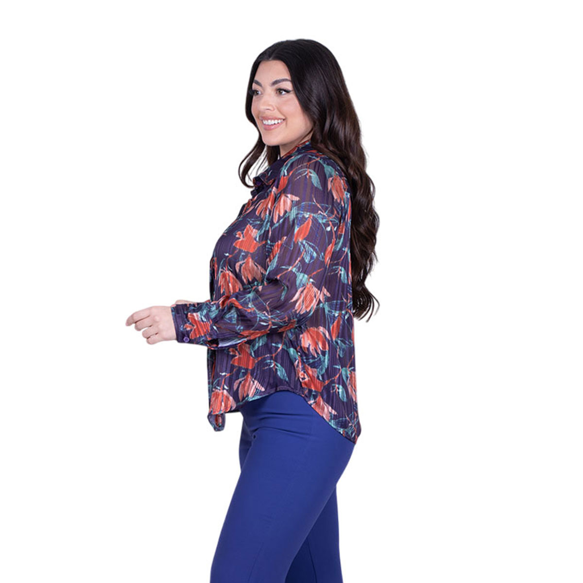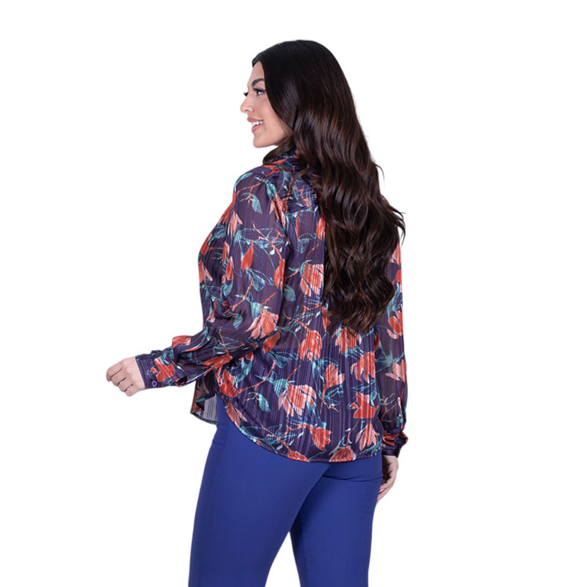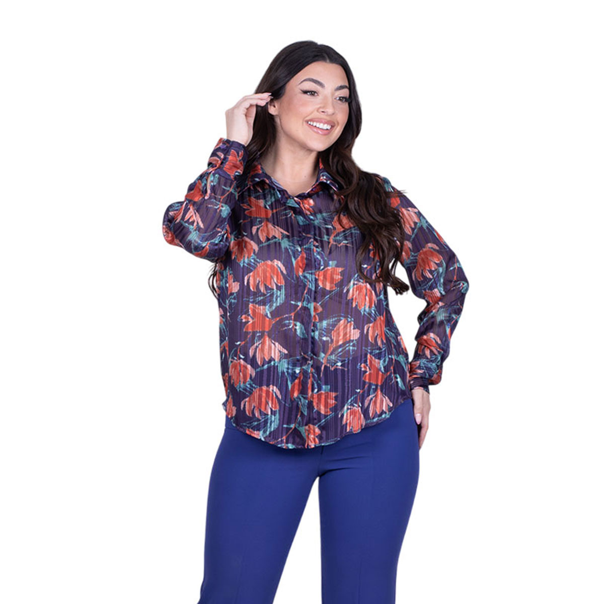 Platinum Πουκάμισο Μωβ Με Χρωματιστά Floral Γυναικείο Mακρυμάνικο All Day Free Size – IT-250-GU-V
