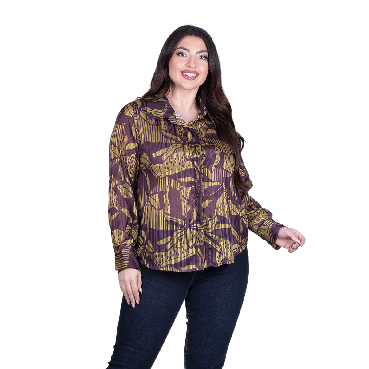 Platinum Πουκάμισο Μωβ Με Μουσταρδί Άνθη Γυναικείο Mακρυμάνικο All Day Free Size – IT-251-GU-PR