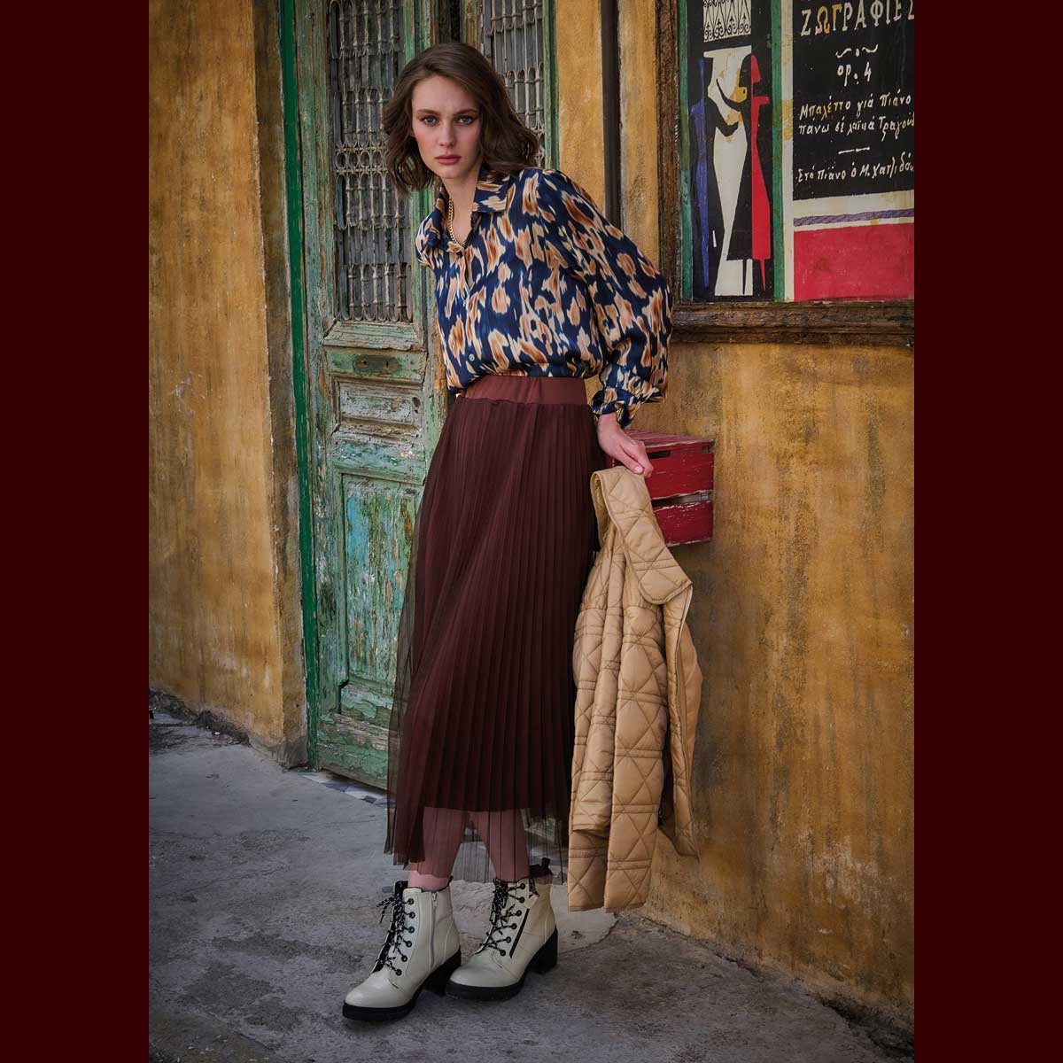Platinum Φούστα Κεραμιδί Γυναικεία Πλισέ Ασύμμετρη Μidi All Day Free Size – 1019-IT-2
