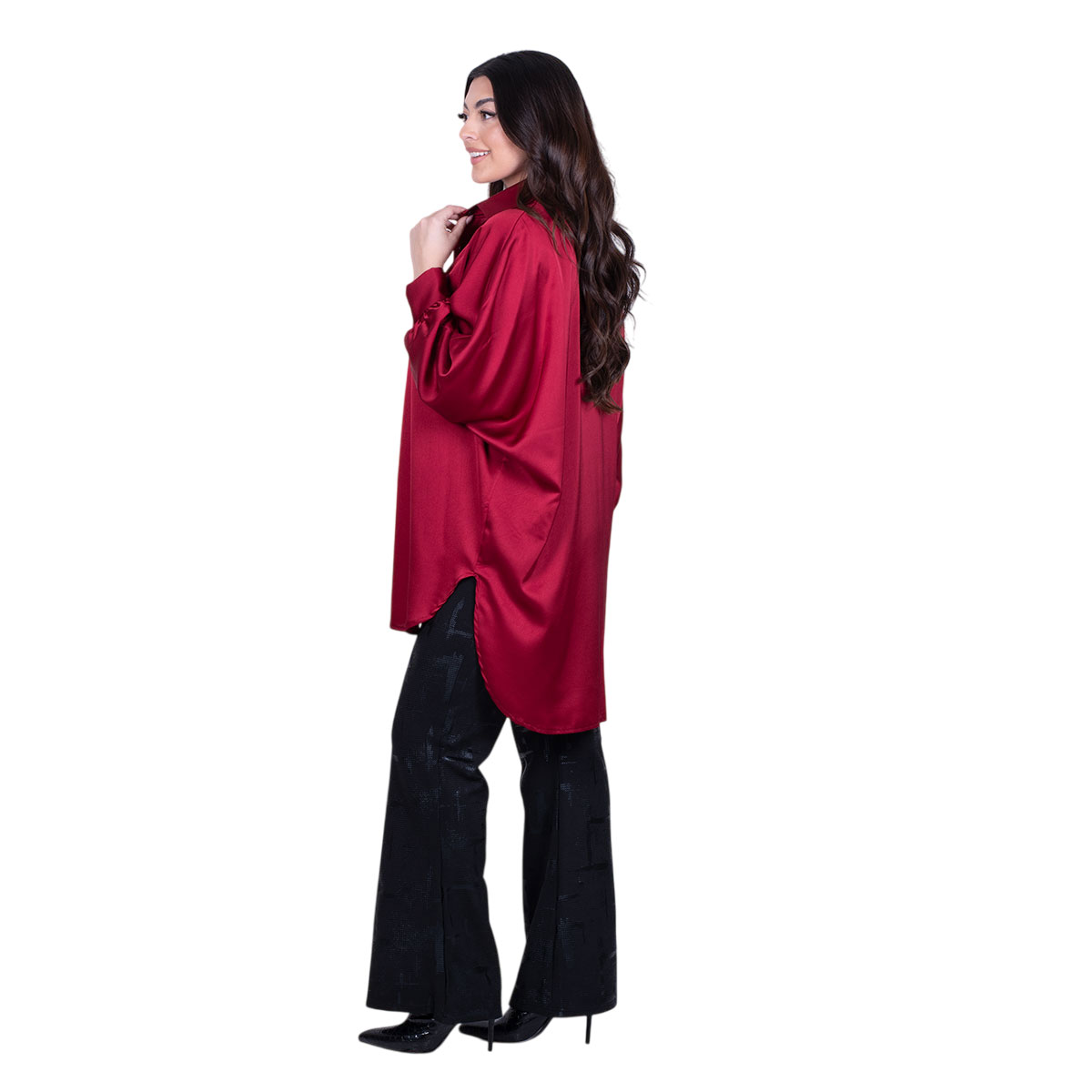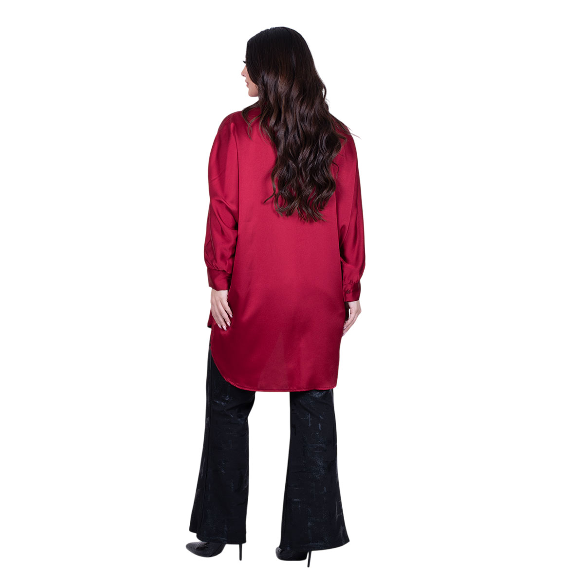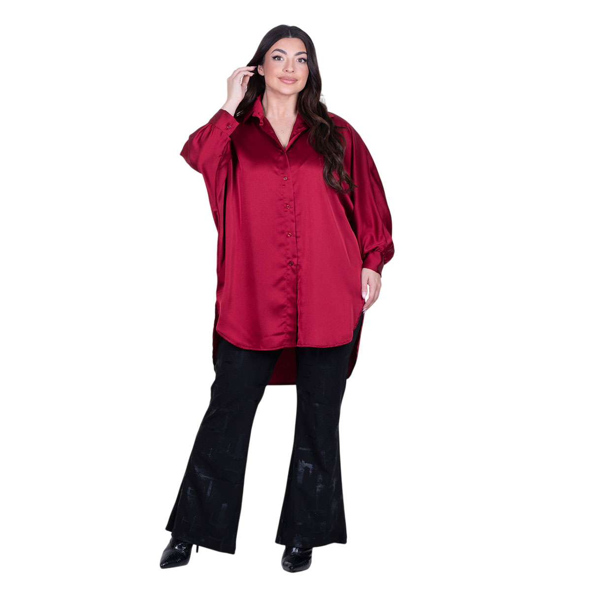 Platinum Πουκάμισα Μπορντοκόκκινο Γυναικεία Μακριά Σατινέ All Day Free Size – 5042-42