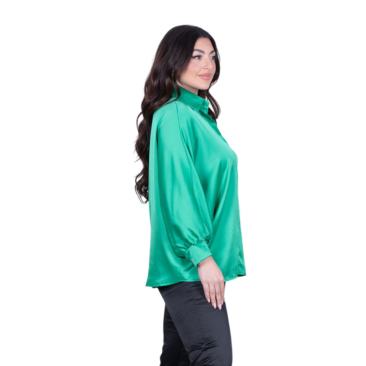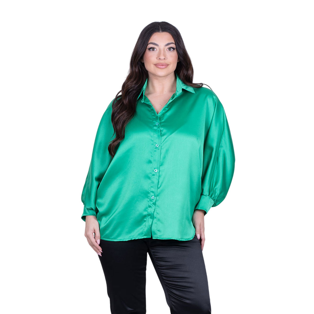 Platinum Πουκάμισο Πράσινο Brazil Γυναικείο Σατινέ Μακρύ Με Γιακά All Day Free Size – 5337-42-GP