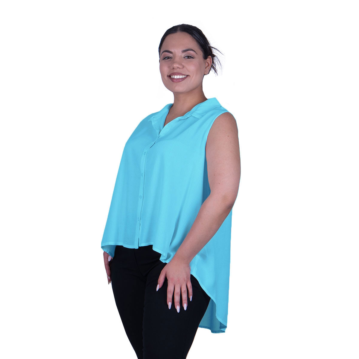 Platinum, νεανικό, πουκάμισο τυρκουάζ γυναικείο, καλοκαιρινό, ασύμμετρο, αμάνικο με γιακά, ιδιαίτερα δροσερό και φιλικό με το δέρμα σας.
