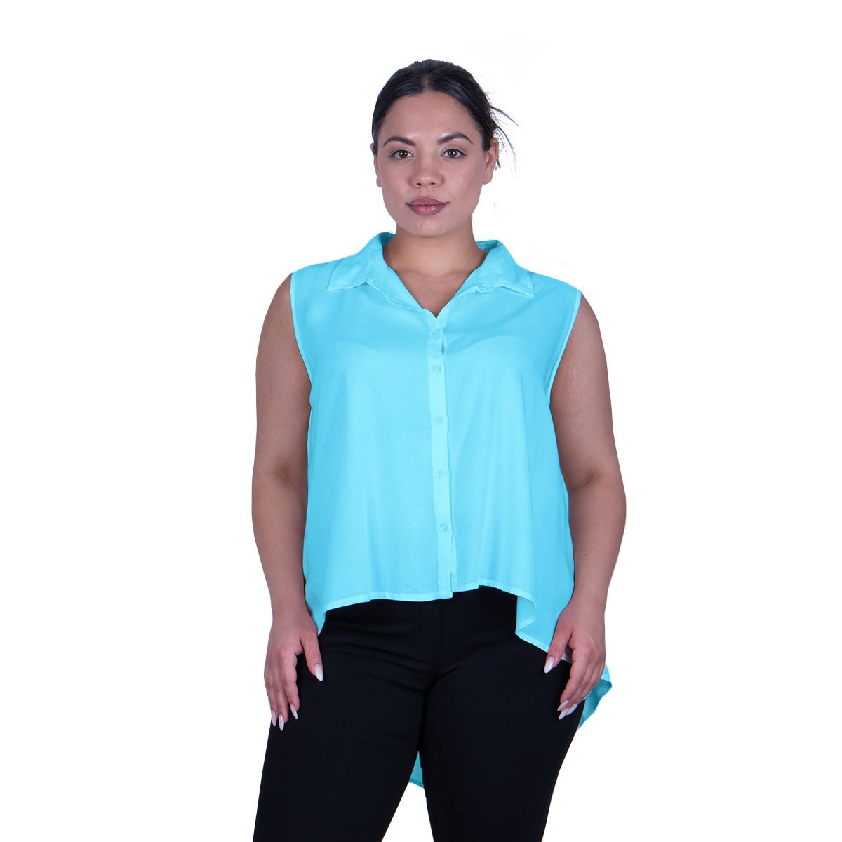 Platinum Πουκάμισο Aqua Γυναικείο Αμάνικο Ασύμμετρο Casual All Day – 6658- AQ