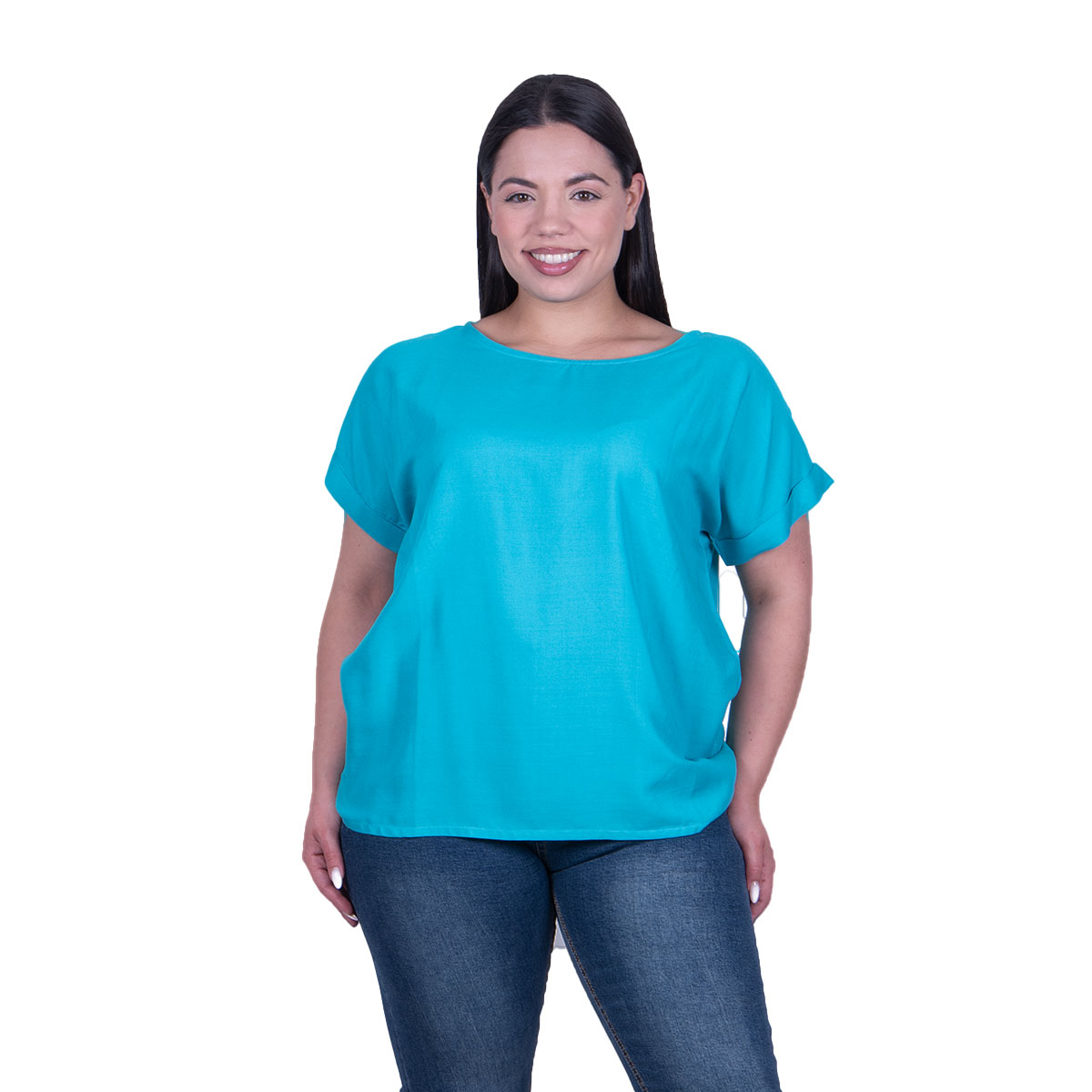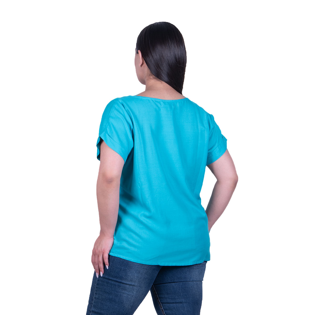 Platinum Μπλούζα Tιρκουάζ Γυναικεία Κοντομάνικη Ζαπονέ All Day Free Size – NA-9349-TRF