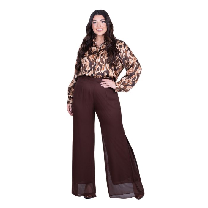Gomore Παντελόνι Καφέ Γυναικείο Με Μουσελίνα Βραδινό – GM-35821-BR