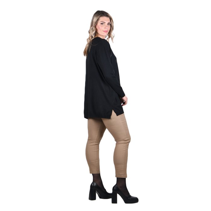 Platinum Μπλούζα Μαύρη Γυναικεία Μακρυμάνικη Με Τσέπες Καθημερινή ”Καρδιές Strass”-1029-J-BC