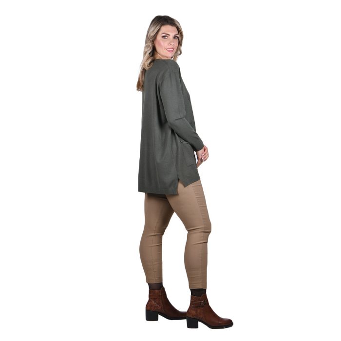 Platinum Μπλούζα Χακί Γυναικεία Μακρυμάνικη Με Τσέπες Καθημερινή ”Καρδιές Strass”-1029-J