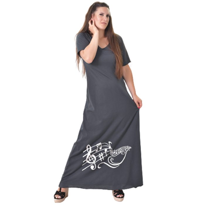 Fairyland Φόρεμα Ανθρακί Γυναικείο Καλοκαιρινό Μaxi Κοντομάνικο Casual Με Νότες All Day – FM-5851-AN