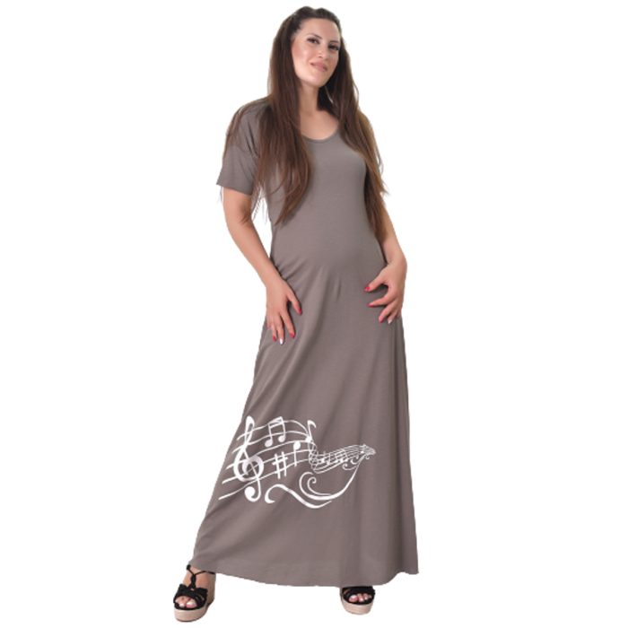Fairyland Φόρεμα Γκρι Γυναικείο Καλοκαιρινό Μaxi Κοντομάνικο Casual Με Νότες All Day – FM-5851-G